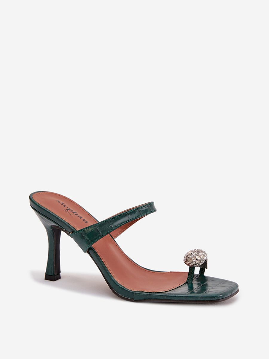 Elegant women’s flip-flops made of eco leather are a unique proposition for women who appreciate style and a feminine look. The slim stiletto heel beautifully emphasizes the silhouette, adding lightness and elegance. The strap on the instep provides stability, and the decorative, jewelry-like detail on the toe catches the eye and gives the whole a luxurious character. This model will be perfect for evening outings, receptions, and special occasions.
