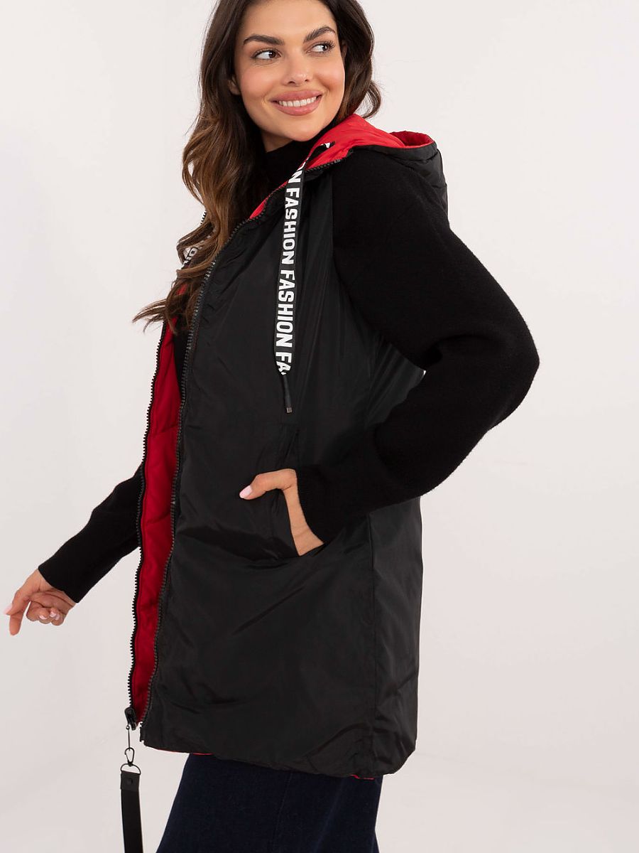 The double-sided vest is a practical and stylish option for colder days, ideal for everyday, work or casual styling. The quilted texture gives it a modern look, while the zippered pockets on one side and slip-on only on the other provide functionality and secure storage for small items. Made of durable polyester, with synthetic insulation, it will be perfect for the fall, winter and spring seasons, ensuring warmth and comfort. The vest has a zipper and a hood to keep out the wind and cold. The smooth design and pre-knee length make it a versatile piece of clothing that combines practicality with a fashionable look.