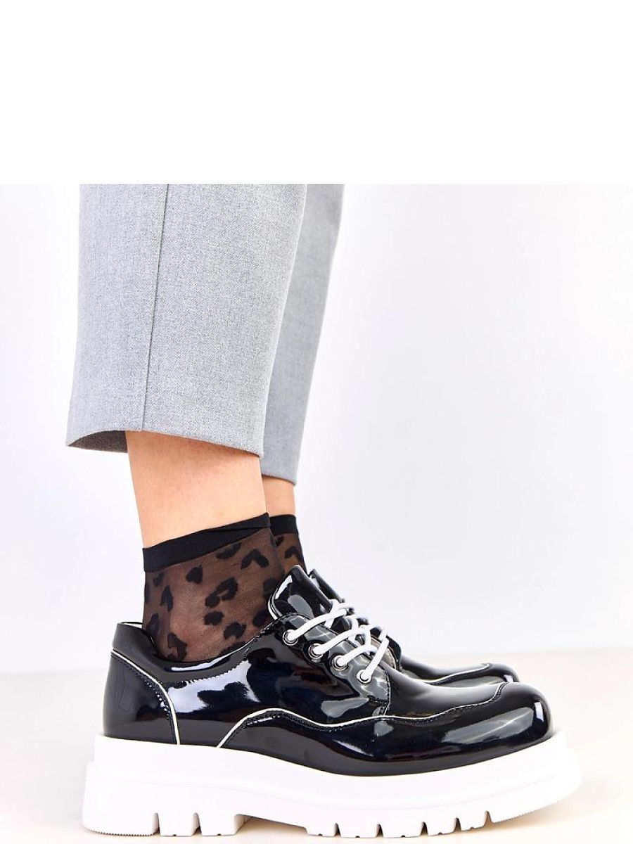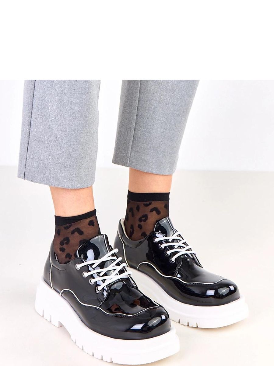 Polished half-shoes on a massive platform are a stylish combination of elegance and modern character. Made of high-quality eco leather with a flashy, glossy finish, they attract attention and add a fashionable expression to any styling. The model stands out with a square toe and a stable platform with a height of 3.5 cm, which ensures comfort and slightly lifts the silhouette. Lacing allows for a perfect fit to the foot, and the natural leather insole guarantees comfort and proper ventilation throughout the day. It is an excellent choice for women who appreciate elegance in a modern edition, perfect for both the office and everyday urban stylizations.