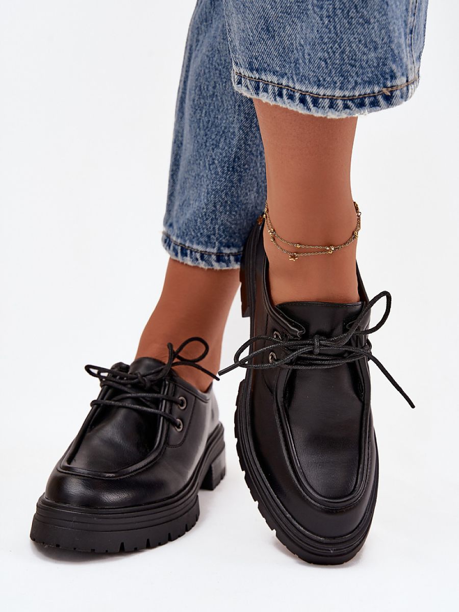 Women’s lace-up shoes made of eco leather are a classic and versatile option for everyday wear. The lace-up design allows for a perfect fit, providing comfort and stability while walking. The simple, elegant style makes the shoes seamlessly blend with both casual and more formal outfits. This is a practical choice for women who value comfort and timeless style.