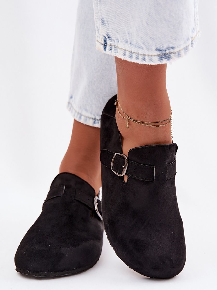 Women’s shoes in the style of loafers made of eco suede are a combination of comfort and a fashionable look. The slip-on style ensures quick putting on, and the wide toes guarantee freedom for the toes and comfort of wearing throughout the day. The model is complemented by a decorative strap with a gold buckle, which adds a stylish accent and emphasizes the character of the footwear. The profiled, soft insole adjusts to the foot, increasing comfort and making the shoes perfect for everyday styling.