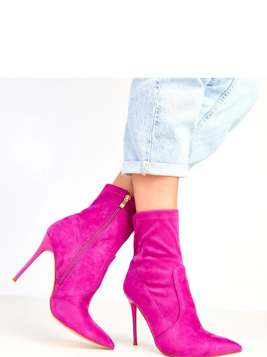 Stylish ankle boots for women made of soft ecological suede leather. A slim pointed toe and an 11-centimeter stiletto heel give them an exceptionally feminine character and visually lengthen the legs. The model has a 14.5 cm high upper that delicately wraps around the ankle and pairs beautifully with both pants and an elegant dress. The zip closure ensures easy on and off, while the fabric-lined interior guarantees comfort. These elegant boots are perfect for special occasions, meetings, or evening outings, a perfect choice for women who appreciate classic style with a modern twist.