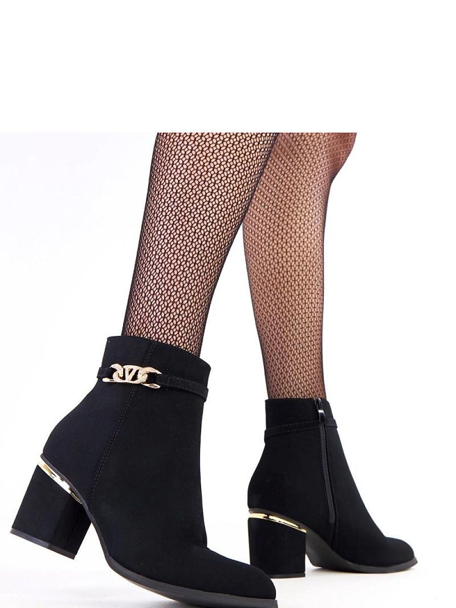 Ankle boots with a gold ornament with zircons are an elegant model that combines classic style with subtle shine. Made of eco leather, they look stylish and timeless, and the almond toe adds delicacy and feminine character to them. The insulation inside makes the shoes perfect for colder days, providing comfort and convenience. The stable 7 cm heel guarantees comfortable wear and visually slims the silhouette. The gold ornament with sparkling zircons adds an elegant accent that distinguishes the model from classic ankle boots. Thanks to the practical zipper closure, the shoes are easy to put on, and the fabric insole increases the comfort of everyday use. This is a versatile choice for many autumn-winter stylizations.