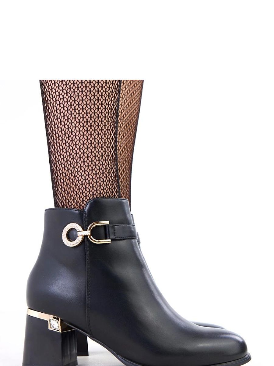 Elegant women’s ankle boots made of synthetic leather are the perfect choice for cooler days. The classic design has been enhanced with subtle metallic decorations, adding character and a modern touch to the footwear. The model has an almond toe, which visually slims the foot, and a stable 6.5 cm column heel ensures comfort throughout the day. The ankle-high shaft (approx. 18 cm) looks great both with trousers and a dress. The boots are insulated, guaranteeing comfort and warmth in the autumn-winter season. The soft fabric insole increases comfort, and the practical zipper closure makes it easy to put on and take off. This stylish and timeless footwear will work in many everyday stylings, combining comfort with elegance.
