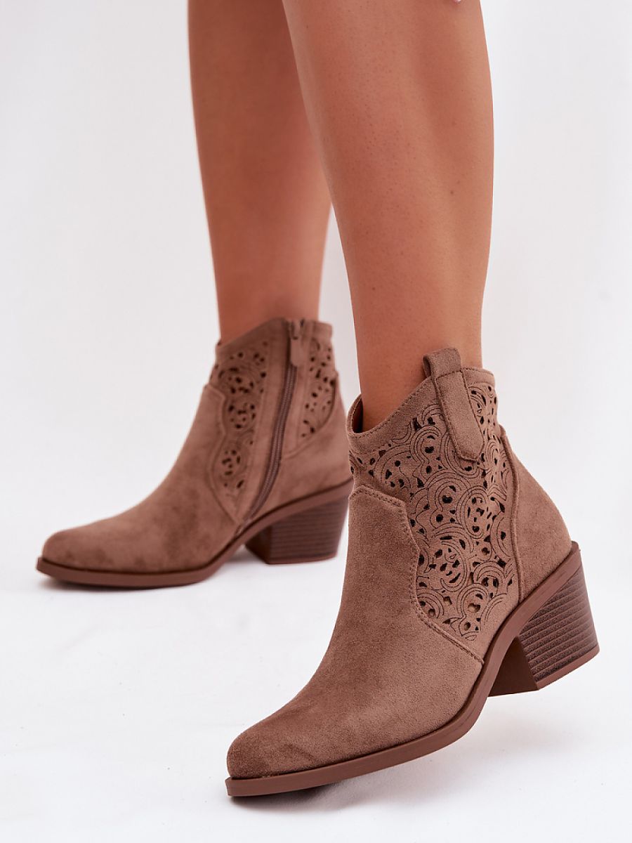 Women’s boots by S.Barski inspired by cowboy style are an eye-catching accent in spring stylizations. Made of eco-suede, they look light and stylish, and the lacy upper adds to their original, eye-catching character. The stable, cut heel ensures comfort and refers to the western climate. The almond toe subtly slims the foot, emphasizing the feminine cut of the model. These are boots that will fit well in both everyday outfits and more expressive stylizations with a touch of boho.
