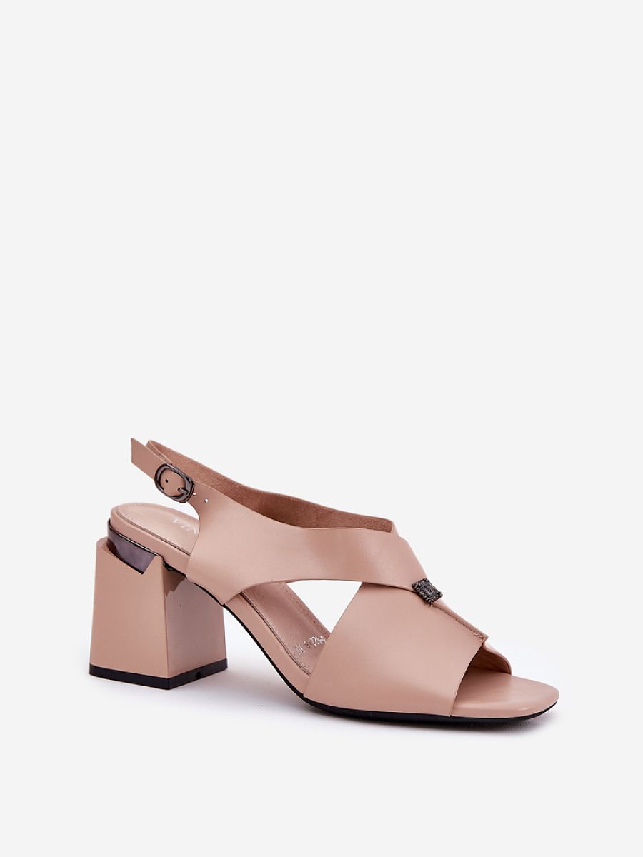 Elegant women’s sandals from the Vinceza brand, made of high-quality eco leather. Set on a column heel, they provide stability and comfort throughout the day. The model stands out with a subtle decorative detail at the front, adding elegance to them. Fastened with a buckle, they allow for a perfect fit to the foot. These sandals pair perfectly with summer outfits, combining elegance with functionality.