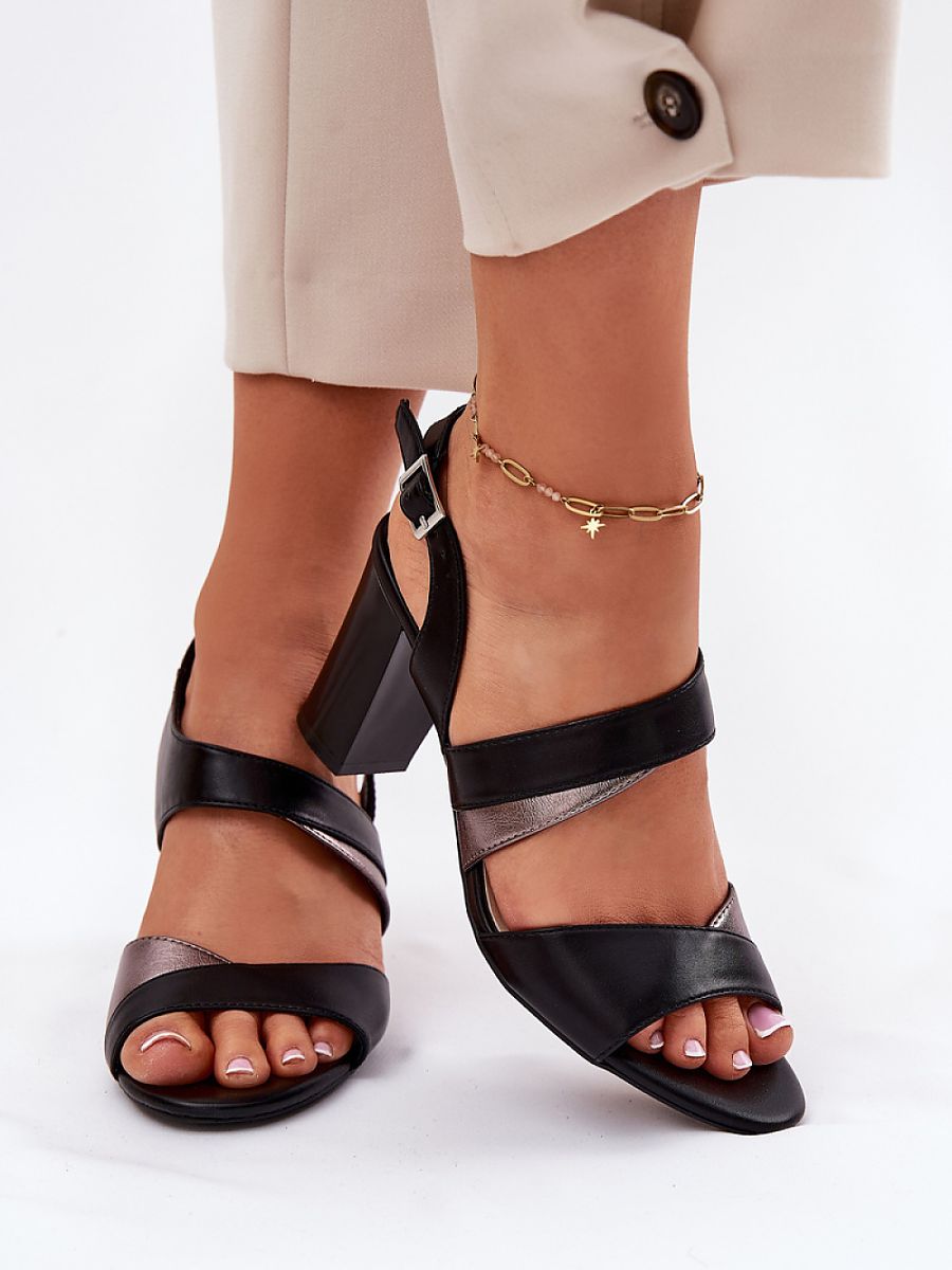 Women’s sandals made of eco leather are an elegant proposition for special occasions. Set on a column heel, they provide stability and comfort throughout the day. The model fastened with a buckle with an adjustable strap allows for a perfect fit to the foot. The soft, leather insole ensures comfort, and the classic cut makes these sandals a perfect choice for various events, combining elegance with functionality.