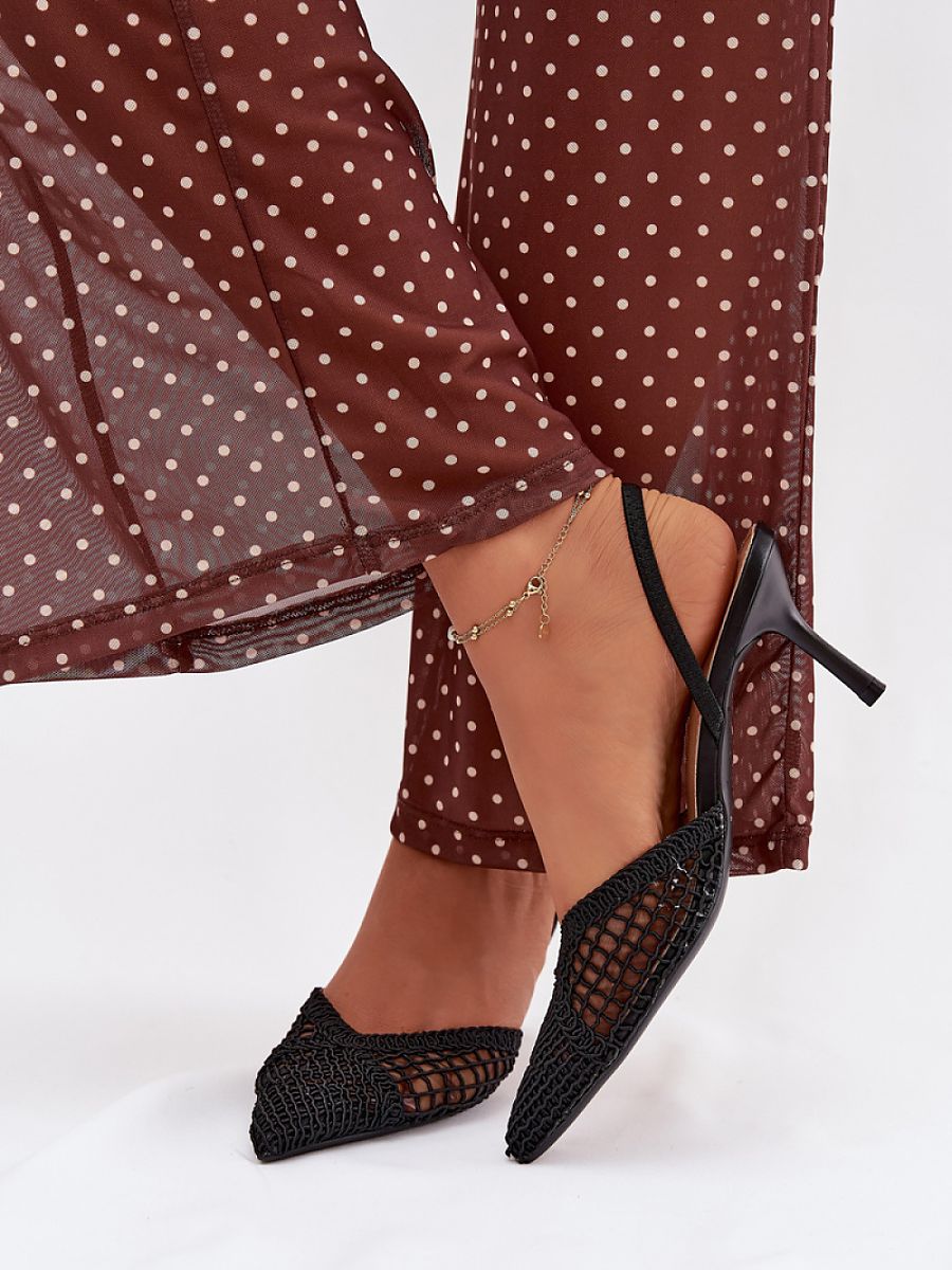Women’s sandals made of eye-catching braiding are a perfect choice for various occasions. The slender stiletto beautifully slims the silhouette and adds a feminine lightness to the styling. Pointed toes emphasize the classic, elegant cut and give the whole a timeless look. The model will work perfectly as a stylish accent to dresses and trousers.