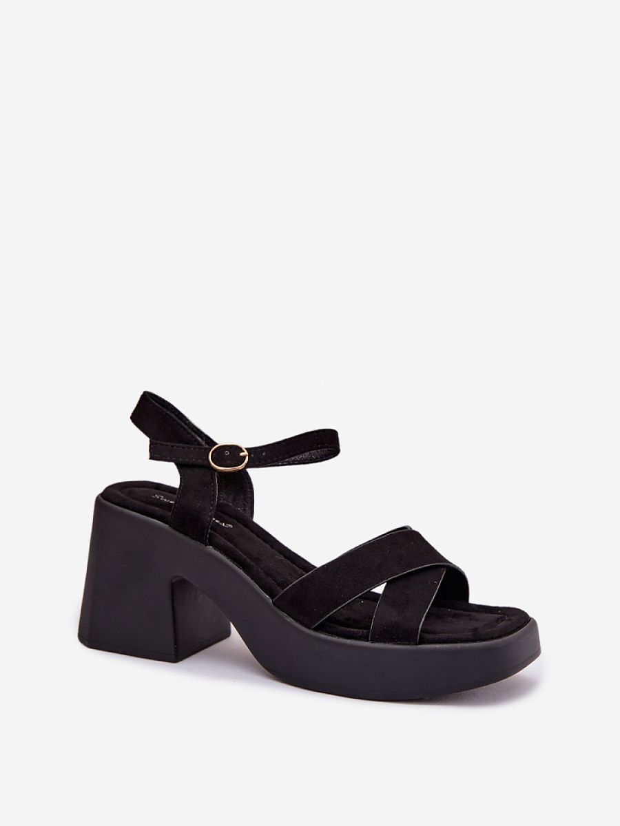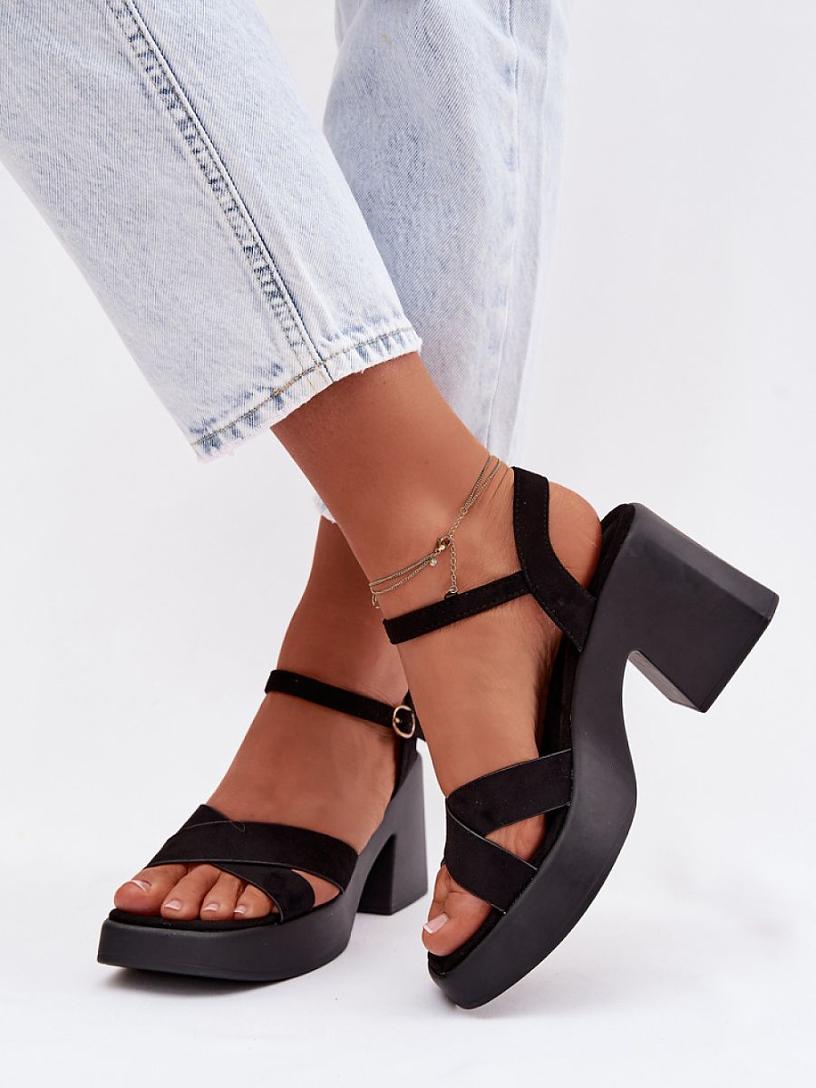 Classic women’s sandals made of eco-suede are an elegant and comfortable option for warm days. The model set on a massive, column heel provides stability and comfort while walking. The adjustable strap fastened with a buckle allows for a perfect fit to the foot, and the soft insole increases wearing comfort. The timeless design makes the sandals perfect for many summer outfits, both casual and more elegant.