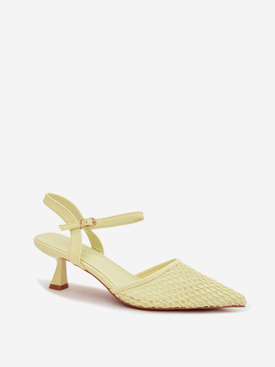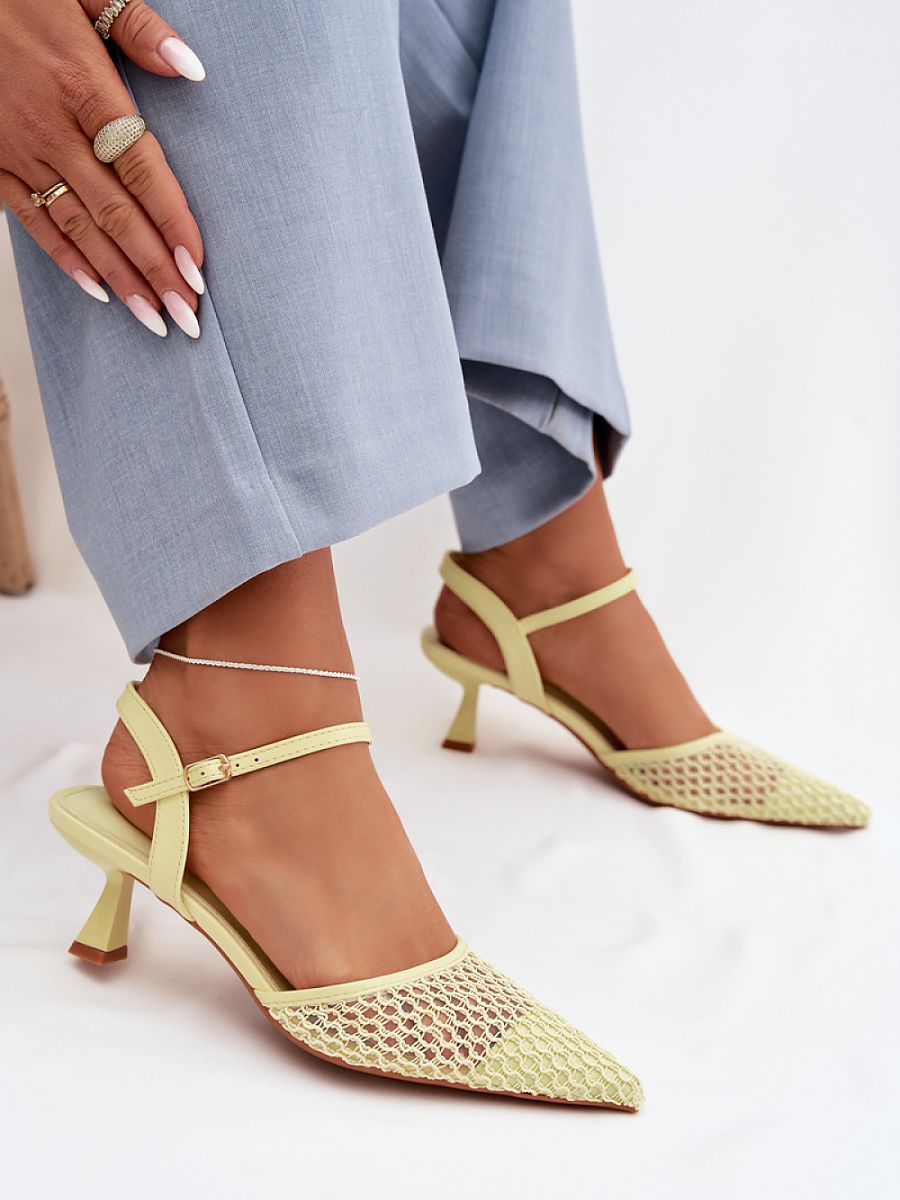 Women’s sandals made of a combination of eco-leather and textile material are a stylish proposition for feminine stylizations. The combination of materials ensures an aesthetic appearance and comfort of wearing, making the model perfect for various occasions. The shoes are set on a slim heel, which subtly slims the silhouette and adds lightness to the steps. Pointed toes emphasize the elegant character, and the buckle strap with adjustment allows for proper fitting to the foot. These impressive sandals will perfectly complement both evening and more elegant summer stylizations.