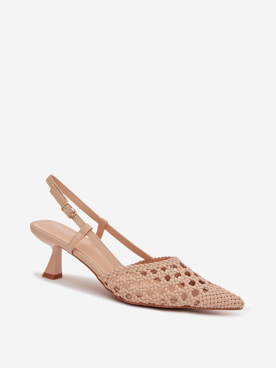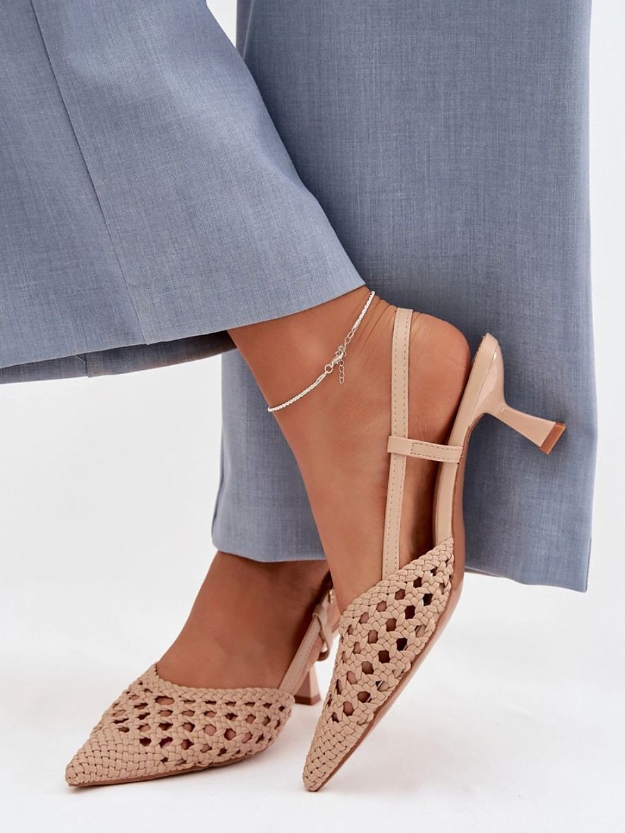 Women’s sandals made of decorative braiding are a stylish proposition for warmer days. Covered, pointed toes emphasize the slender line of the foot and give the shoes an elegant character. The model set on a slender heel subtly slims the silhouette, ensuring a feminine look. The buckle closure allows for a customized fit, increasing comfort and stability while walking. These elegant sandals will perfectly complement summer outfits, both for everyday wear and special occasions.