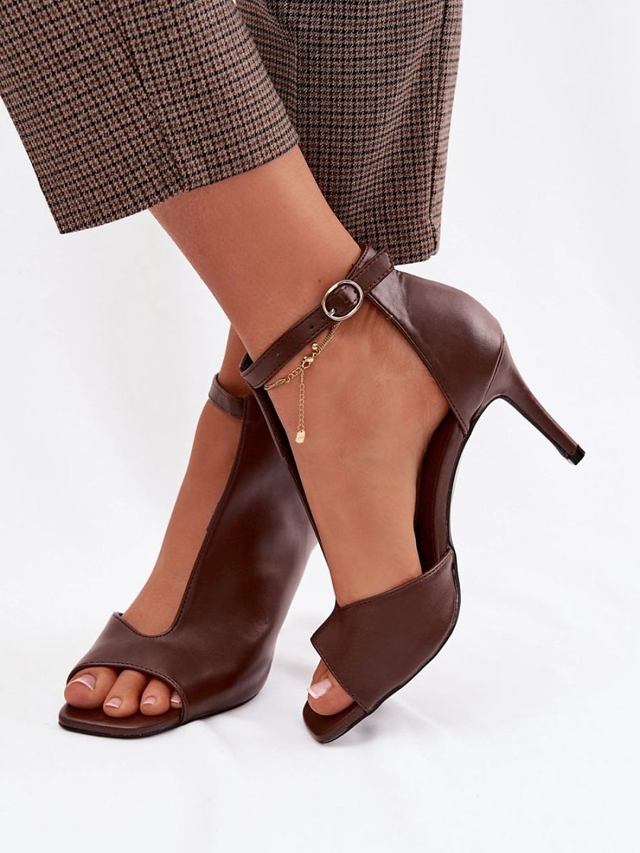 Women’s sandals made of eco-leather stand out with an impressive design with the upper running along the outer side, giving the model a modern character. The slim stiletto heel emphasizes the feminine silhouette and visually lengthens the legs. The buckle closure with an adjustable strap allows for a customized fit and increases stability during wear. These elegant sandals are perfect for evening styling and special occasions.