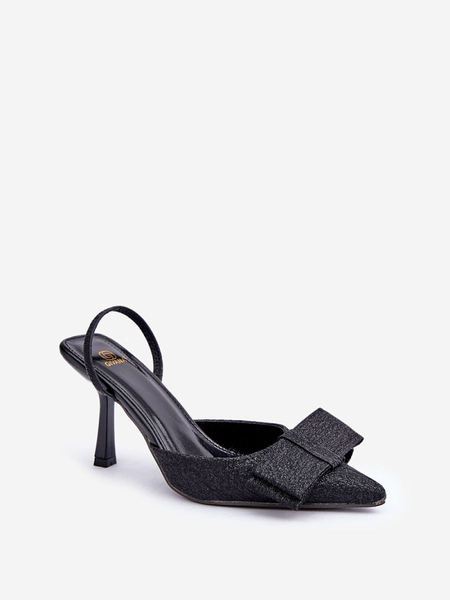 Shiny women’s high heels covered with elegant brocade, which are a perfect choice for New Year’s Eve and evening outings. The model stands out with an elegant bow at the front, adding charm and sophistication. Slim pointed toes emphasize the feminine silhouette, and the high heel elongates the legs, ensuring an elegant look. These high heels will add shine to any outfit, making you shine in company. Perfect for women who appreciate fashion and a bold style!