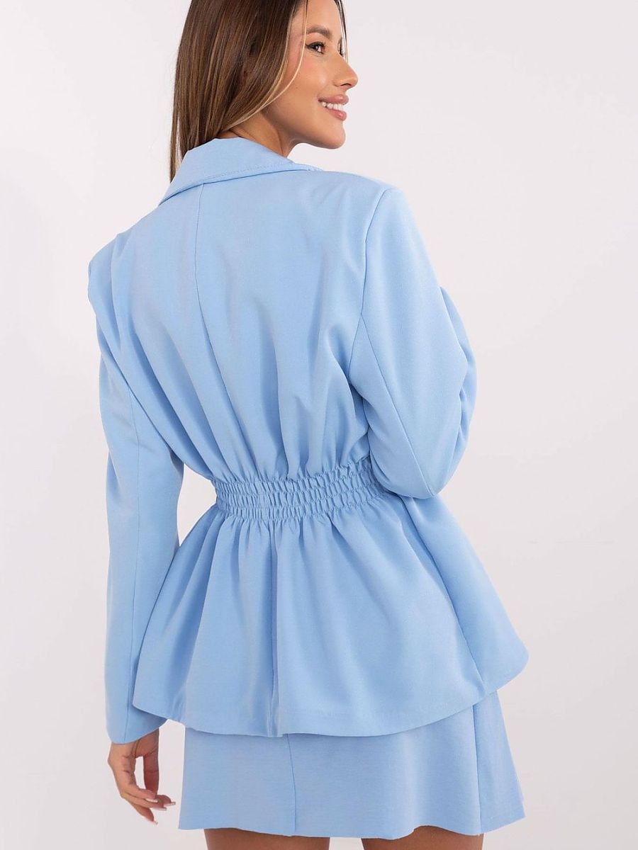 An elegant blazer with shoulder pads is a perfect choice for formal occasions and for work. Made of high quality polyester with a touch of elastane, it ensures comfort and a great fit to the silhouette. The smooth material and classic cut give it a timeless character. The model with long sleeves, buttoned, additionally decorated with subtle gathering at the waist, which highlights the figure. The blazer has a lining, which increases comfort of use. An ideal proposal for women who appreciate style and elegance in their daily stylizations.