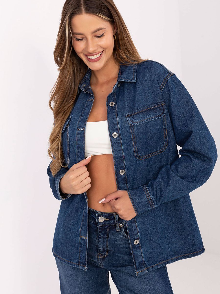 Classic denim jacket of standard length is a must-have in every casual wardrobe. Made of high quality cotton, it will be perfect for the spring/summer season. The model without a hood, with long sleeves and button fastening, stands out with a simple, smooth pattern and practical pockets at chest height. It is a timeless style that will perfectly complement everyday outfits, from dresses to t-shirts and pants.