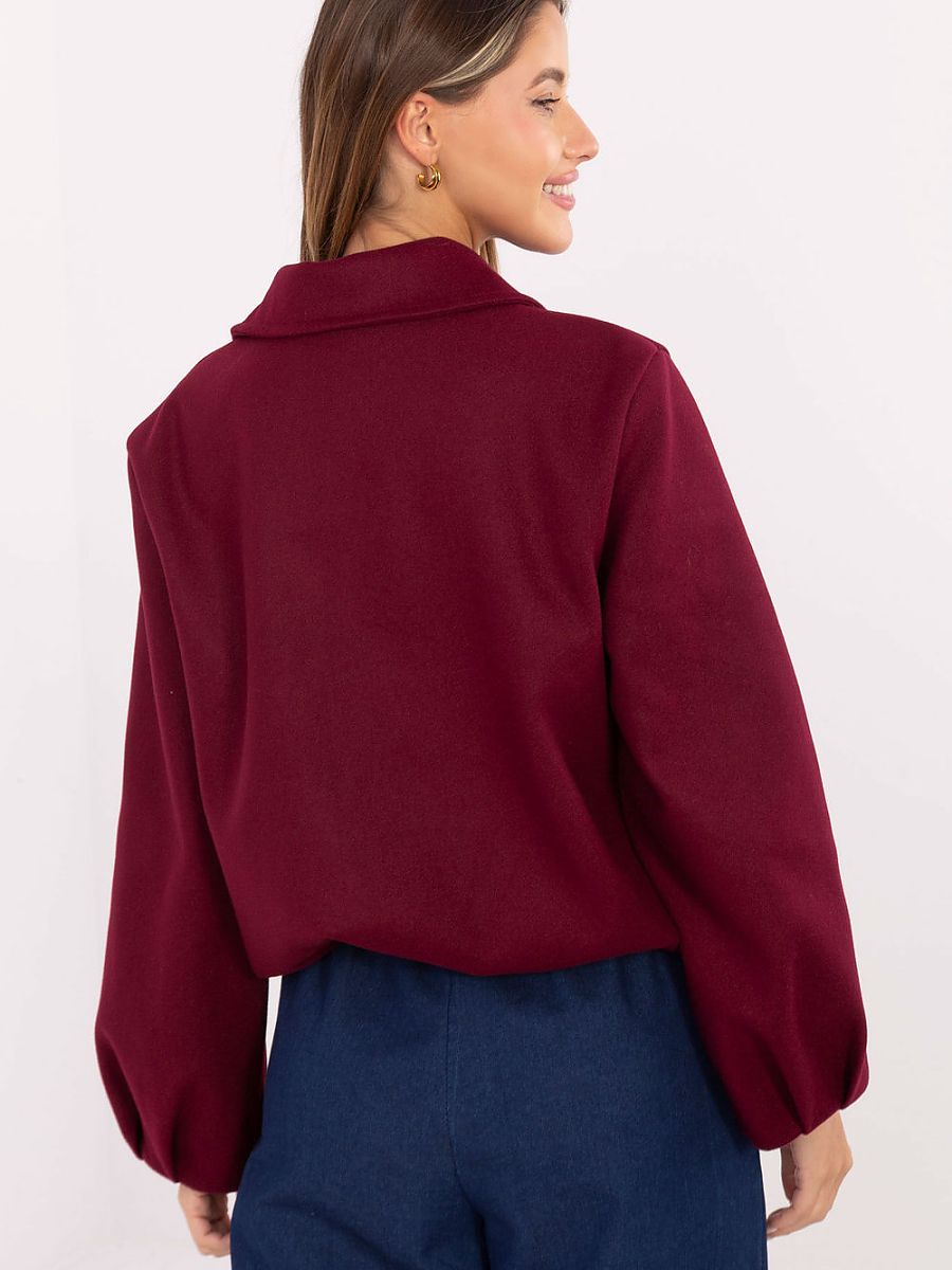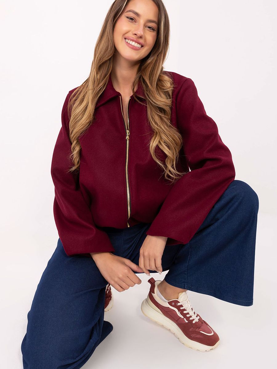 Light transitional jacket in a trendy, slightly looser balloon cut, made of high-quality polyester. The model has a shorter cut, long sleeves, and a practical zipper closure, making it comfortable and functional for everyday wear. The jacket has a collar and lining, which increases user comfort and gives it a neat finish. The characteristic puffy sleeves give the silhouette a fashionable, slightly nonchalant look. Maintained in a smooth pattern, it blends perfectly with casual stylizations, making it ideal for the autumn-winter-spring season as a stylish everyday jacket.