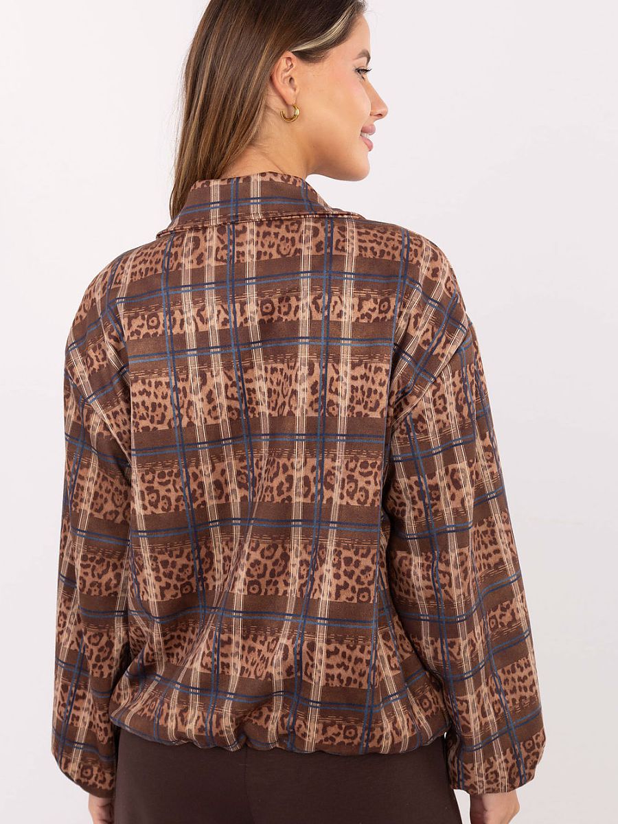 Stylish women’s jacket with a casual character, combining two trendy motifs – animal print and check. Made of high-quality polyester and elastane blend, it provides comfort, flexibility, and durability. The standard length model has long sleeves, a collar, and a zip closure, giving it a classic yet modern look. The lining ensures comfort and aesthetic finish. This is an excellent choice for everyday casual style, perfect for jeans, pants, or skirts, suitable for many urban outfits throughout the season.