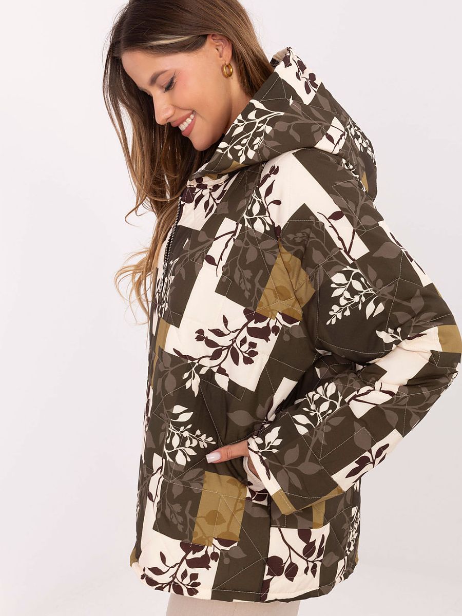 Colorful and stylish quilted women’s jacket is the perfect choice for the autumn, winter and spring seasons. Made of high-quality blend of viscose and polyester, it provides comfort, lightness and resistance to everyday use. The model has a casual character, perfect for everyday stylizations. The jacket has a standard length, long sleeves and a practical hood that protects against wind and cold. The quilted surface gives it a fashionable look, and the colorful print livens up the whole, adding energy and originality. The jacket is fastened with a zipper, and the side pockets provide comfort and functionality. A model without insulation, perfect as a transitional jacket for cooler days. It is an excellent choice for women who value a fashionable look, comfort and lightness in their everyday stylizations.