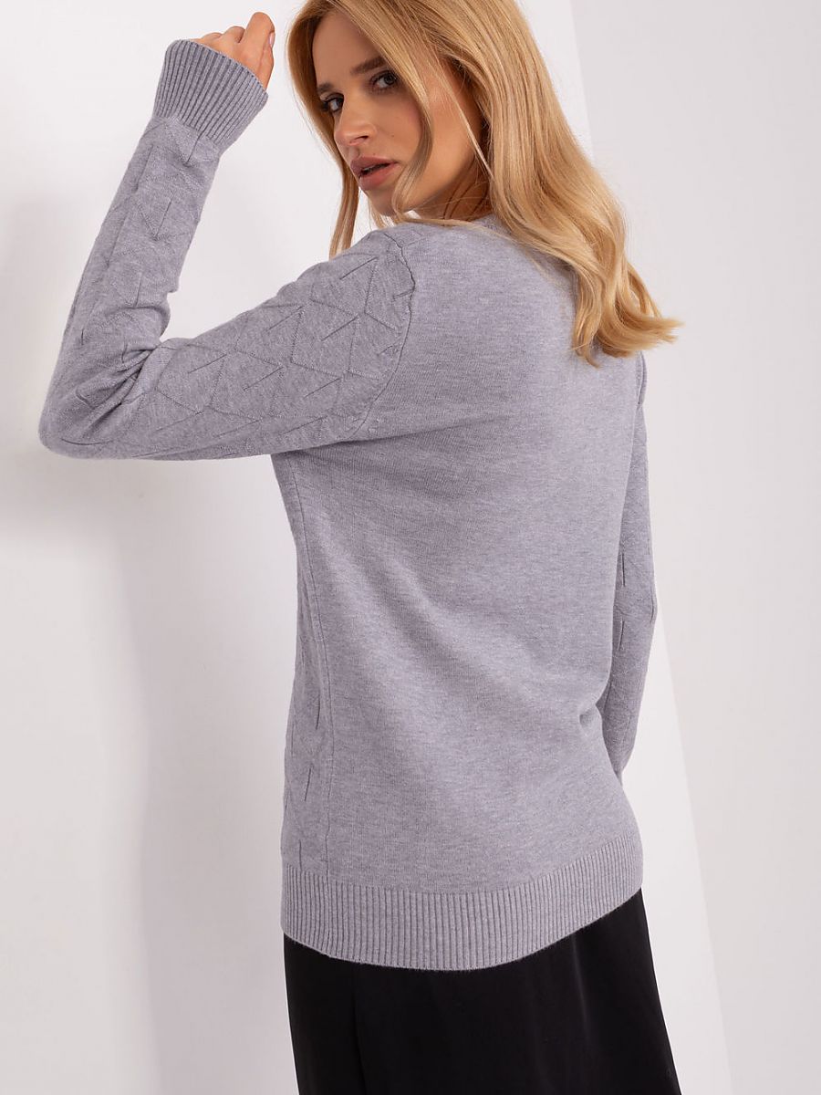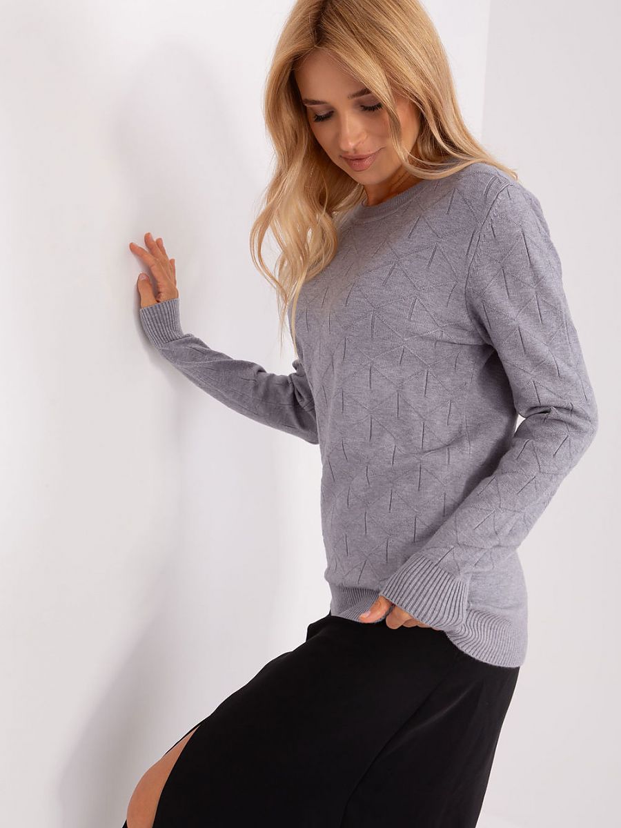 This women’s sweater is an ideal choice for everyday wear. Its varied fabric texture and subtle pattern make it look exceptionally attractive. The sweater is made mainly of soft and pleasant to the touch cotton, which guarantees comfortable wearing all day long. The long sleeve will keep you warm on colder days, and the round neckline gives it versatility. The standard length of this sweater makes it fit with both pants and skirts, making it a versatile closet item. You can wear it for many different occasions, from casual gatherings to going out on the town. This sweater is not only comfortable, but also fashionable, so you can feel good and look stylish at any time of the day.