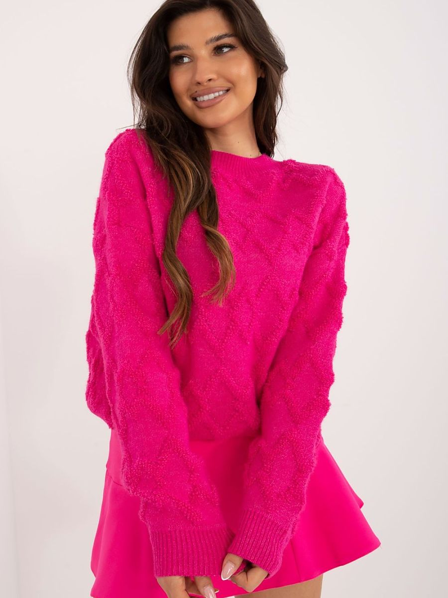Women’s casual sweater, perfect for everyday occasions. It is characterized by a varied texture of the knit, which adds subtle elegance to it. The sweater has a standard length and long sleeves, providing comfort for all-day wear. The round neckline emphasizes the classic character of the model, which will work perfectly both at work and in everyday life.