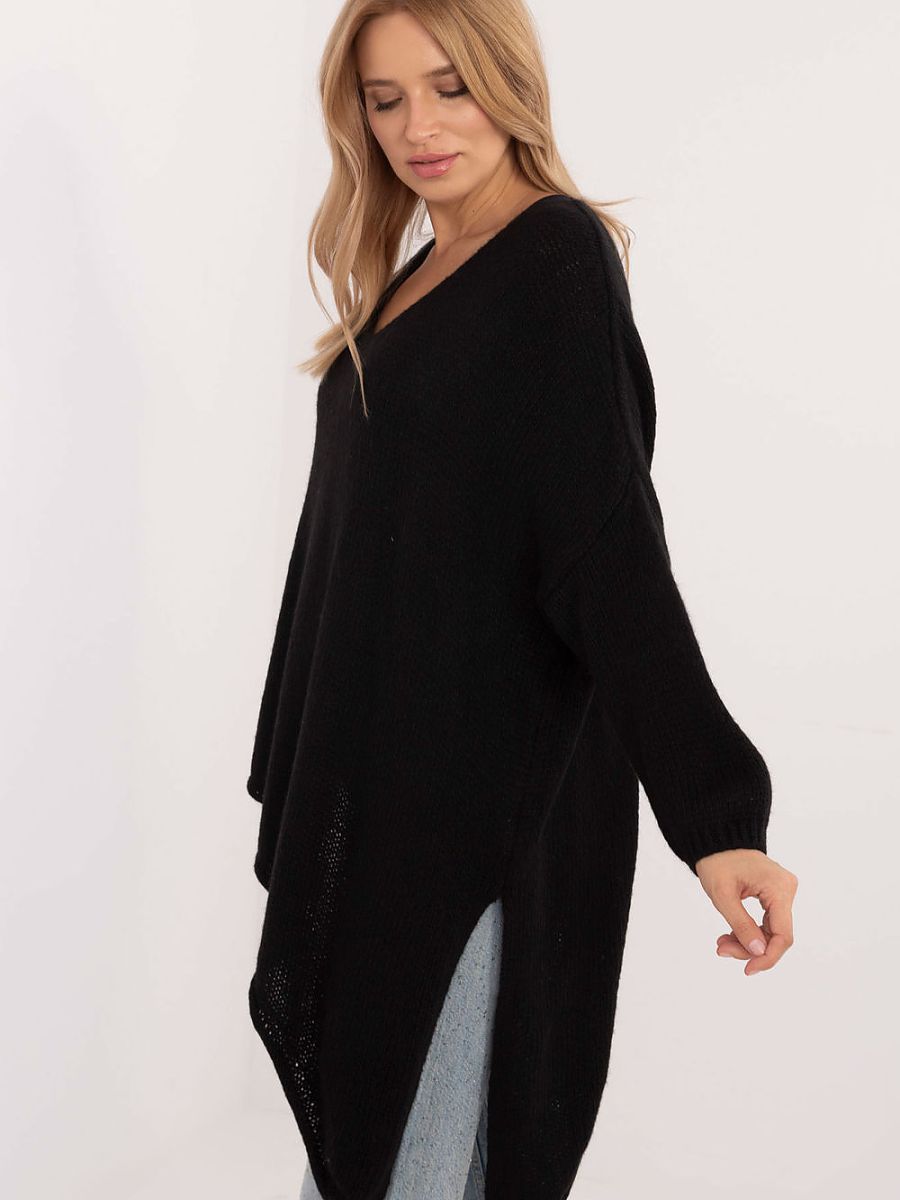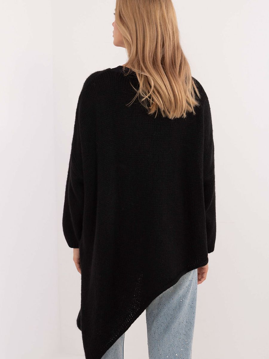 Women’s sweater with a casual character, ideal for everyday wear. Made from a blend of high-quality materials, such as polyacrylic, viscose, wool and polyamide, it provides comfort and pleasant warmth. The smooth pattern dominates the design, giving it a versatile and elegant look. The sweater has an asymmetrical hem, which adds a modern, original character. The long cut and long sleeve make it ideal for colder days. The heart neckline subtly exposes the neck, adding lightness to the styling. A perfect choice for everyday occasions, combining comfort with a fashionable look.
