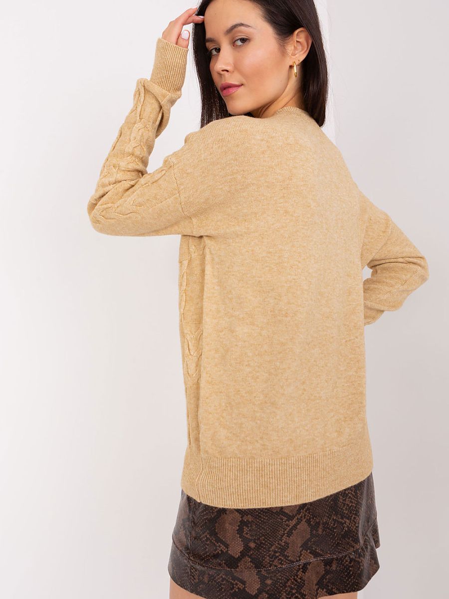 The women’s sweater pulled over the head is a perfect choice for everyday wear. The classic round neckline and long sleeves provide comfort and a versatile style. The model stands out with a dominant pattern and a varied texture of the material, giving it a unique character. Made of high-quality blend of viscose, nylon, and PBT, it is soft, flexible, and pleasant to the touch. Perfect for casual styling, it will work great with both jeans and elegant trousers.