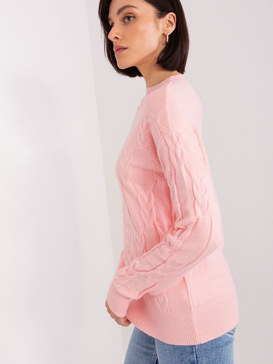 The women’s sweater put on over the head is a perfect choice for everyday wear. The classic round neckline and long sleeves provide comfort and a versatile style. The model stands out with a dominant pattern and a varied texture of the material, which gives it a unique character. Made of high-quality blend of viscose, nylon, and PBT, it is soft, elastic, and pleasant to the touch. Ideal for casual styling, it will work great with both jeans and elegant trousers.