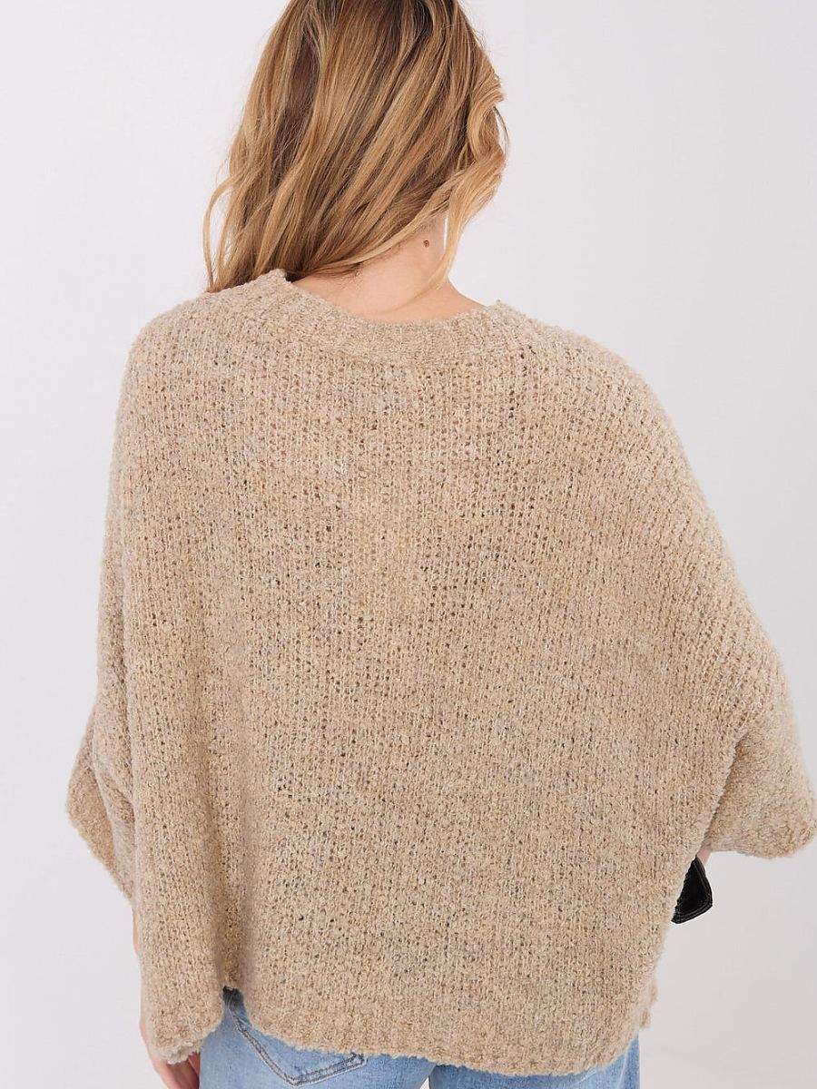This loose women’s boucle sweater is the perfect choice for everyday, casual styling. Made from a blend of acrylic, polyamide, viscose, and wool, it impresses with its soft, pleasant to the touch texture and comfortable wear. The smooth material and characteristic boucle texture give it a trendy, slightly fluffy look. The standard-length model has a comfortable 3/4 sleeve and a round neckline, which adds classic simplicity to it. The sweater has no fastening, making it ideal as a light, open cover for cooler days. It is a versatile wardrobe piece that easily complements everyday outfits with jeans, trousers, or a skirt.