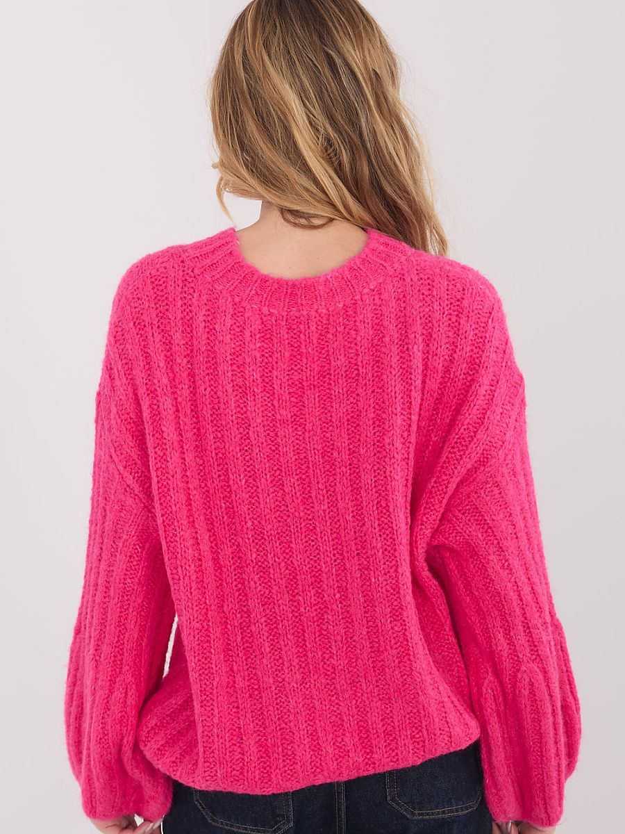 Women’s sweater with a casual character, made of a thick knit material that will be perfect for cooler days. An ideal model for everyday wear and work, combining comfort with classic style. The smooth pattern gives it a universal look, while the ribbed structure of the material emphasizes its fashionable character. The sweater is made of a high-quality blend of polyacrylic, polyamide, viscose, and wool, providing warmth, softness, and wearing comfort. Standard length, round neckline, and no fastening create a timeless style. Long, puffy sleeves add feminine charm and originality, making the sweater a stylish element of everyday outfits.