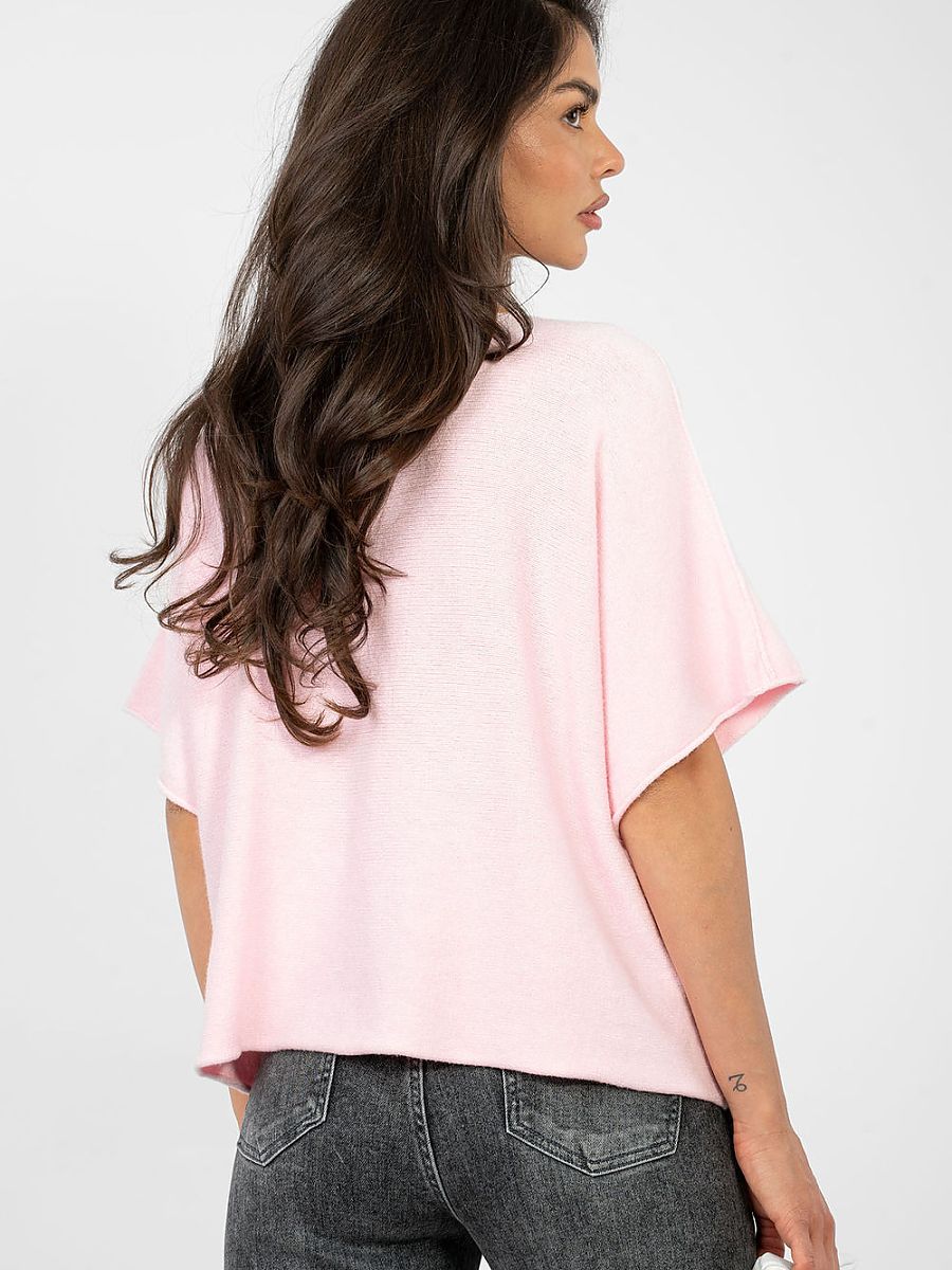 Elegant women’s oversized sweater, which will work perfectly both for everyday wear and for work. Made of a blend of viscose, polyester, and nylon, it provides comfort and style. The sweater is reversible, allowing for creating various stylizations. It has a smooth texture, making it suitable for many outfits, and its short length and 3/4 sleeves add a modern character to it. The round neckline emphasizes the neck, and the lack of fastening gives the whole a lightness and freedom. It is an ideal choice for women who appreciate elegance combined with comfort.