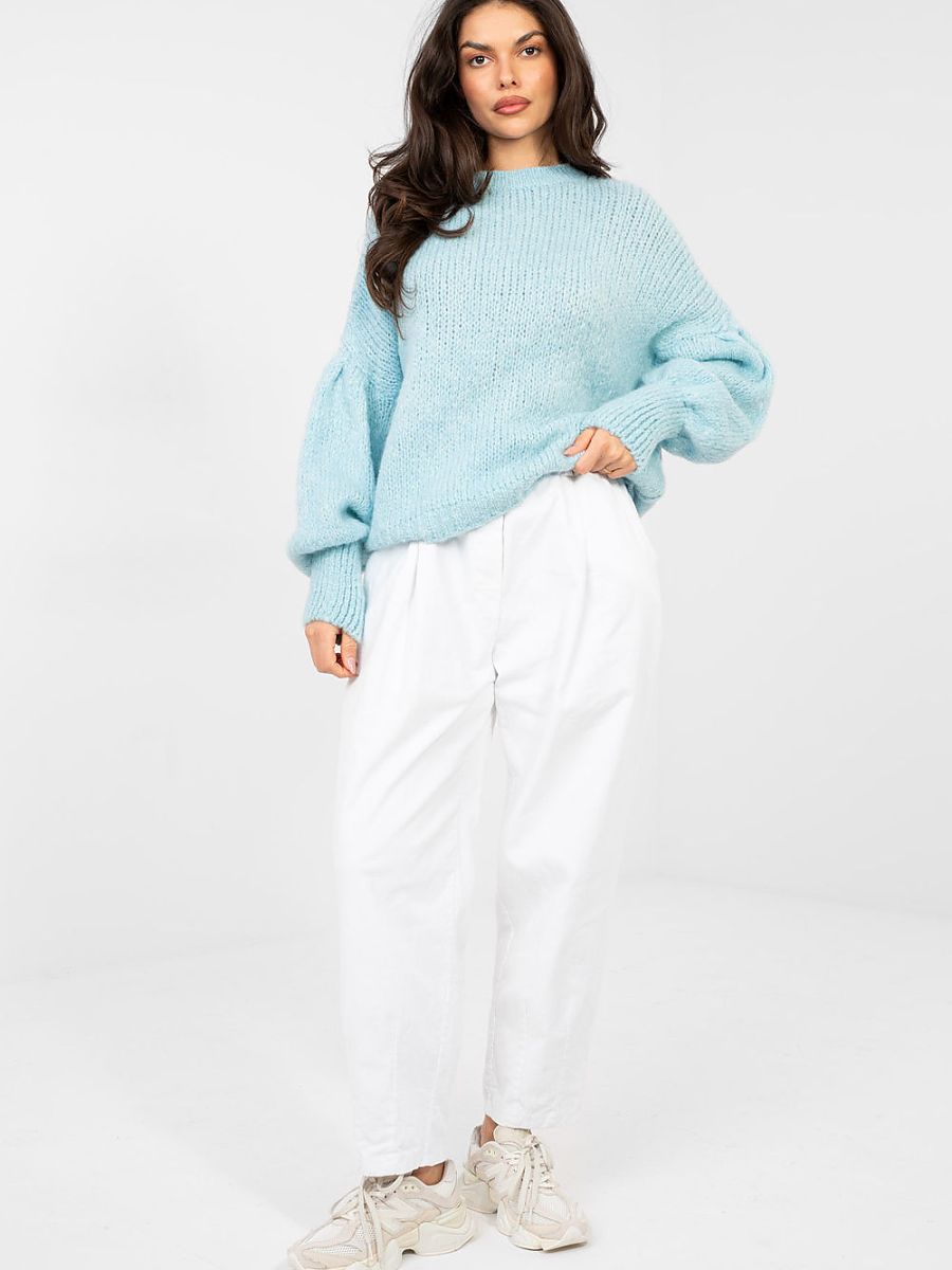 Stylish women’s sweater with a casual character, which will work both in everyday life and at work. A model of standard length and without fastening ensures comfort and freedom of wearing, perfectly matching everyday stylizations. The sweater is made of a soft and pleasant to the touch blend of acrylic, polyamide, viscose, and wool, which guarantees thermal comfort and material durability. The dominant pattern gives it a fashionable look, while the smooth elements balance the whole, creating an elegant effect. Puffy sleeves add character and feminine charm to the whole, making the sweater an eye-catching and at the same time versatile wardrobe item for many occasions.
