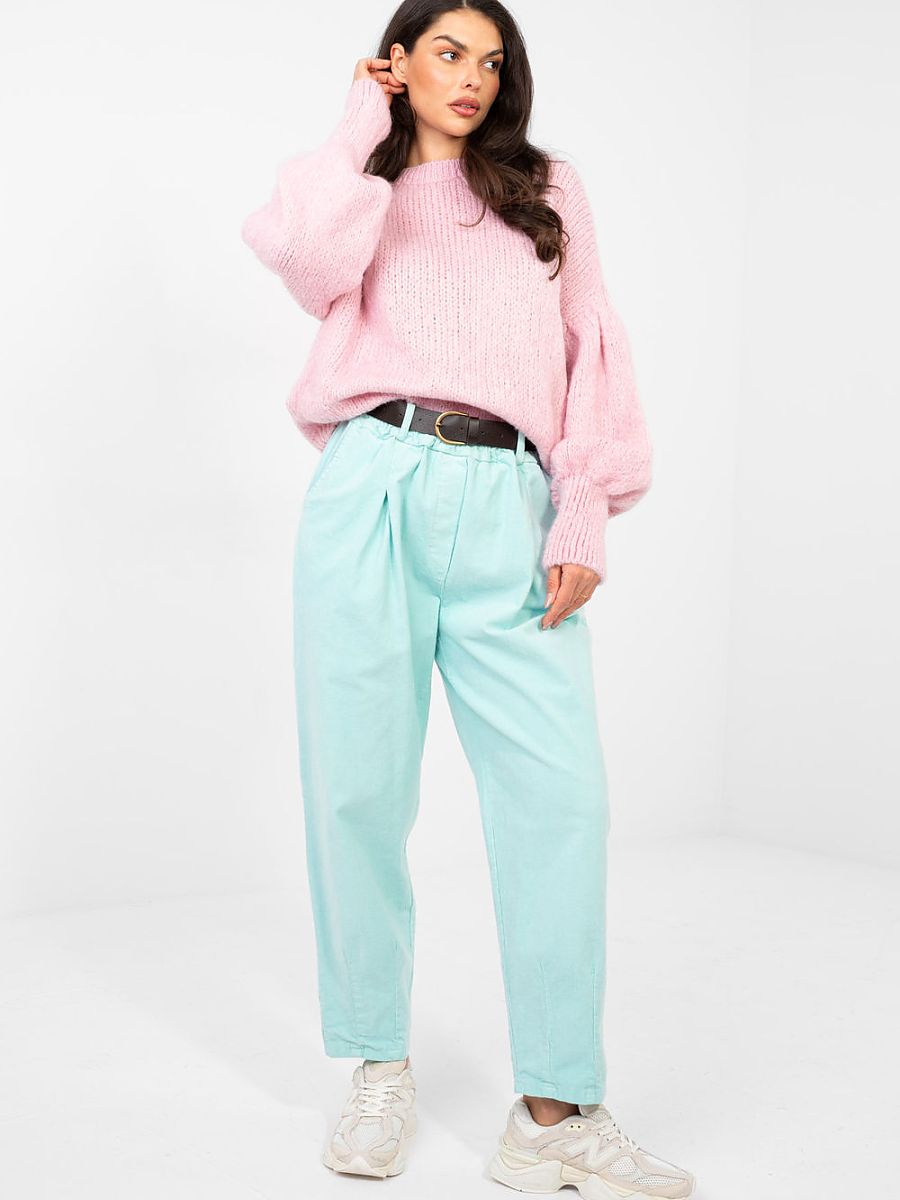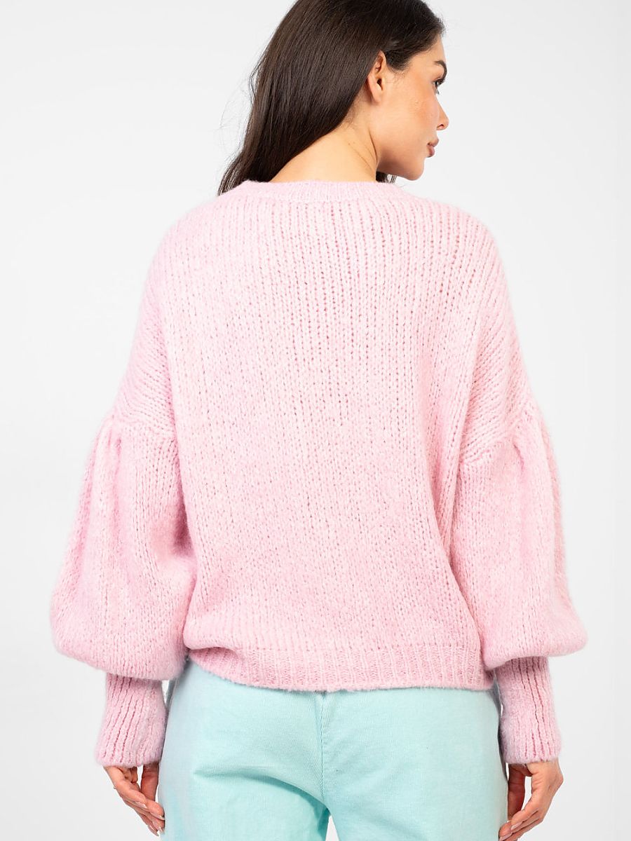Stylish women’s sweater with a casual character that will work both in everyday life and at work. A model of standard length and without fastening provides comfort and freedom of wearing, perfectly matching everyday stylizations. The sweater is made of a soft and pleasant to the touch blend of acrylic, polyamide, viscose, and wool, which guarantees thermal comfort and material durability. The dominant pattern gives it a fashionable look, while smooth elements balance the whole, creating an elegant effect. Puffy sleeves add character and feminine charm to the whole, making the sweater a striking yet versatile wardrobe piece for many occasions.