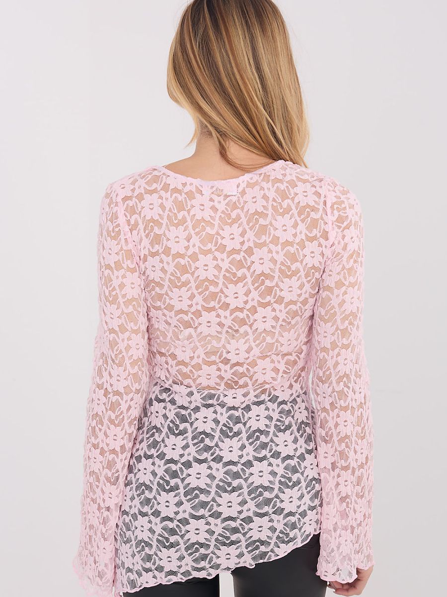 Elegant lace blouse with a refined and feminine character, perfect for formal occasions, parties, as well as for everyday styling or work. The model stands out with a varied texture of the material, which adds subtle elegance and a striking look. The blouse is made of a combination of polyamide and elastane, which ensures flexibility, a perfect fit to the silhouette, and comfort when wearing. The standard length combined with bell sleeves creates a stylish, slightly flowing silhouette, and the round neckline emphasizes the neck line and adds classic elegance. The model has no fastening and is put on over the head. The lack of lining makes the blouse light and airy, perfect for both elegant trousers and a skirt, creating an impressive and modern styling.