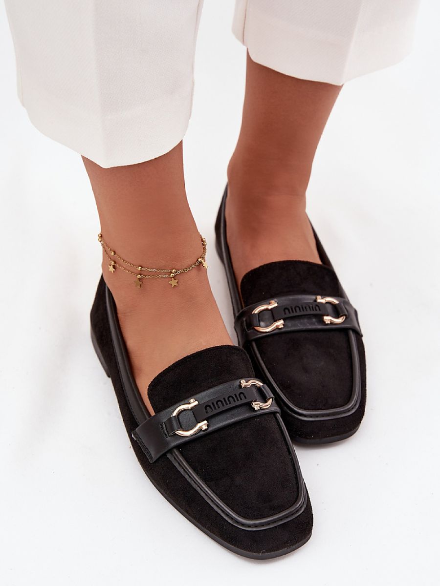 Women’s loafers are an elegant and versatile proposal, perfect for everyday wear. Set on a flat heel, they provide comfort and stability while walking. The model stands out with a subtle, decorative element at the front, which adds a stylish character to the whole. Rounded toes emphasize the classic shoe design, and the soft insole made of eco-leather guarantees comfort even during longer wear. This timeless footwear will work perfectly in both casual and more elegant stylizations.