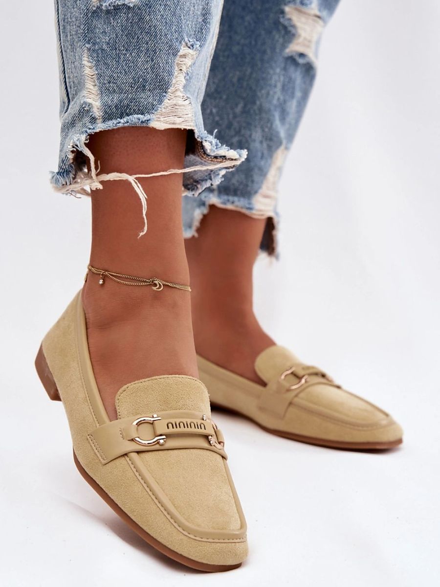 Women’s loafers are an elegant and versatile proposition, perfect for everyday wear. Set on a flat heel, they provide comfort and stability while walking. The model stands out with a subtle decorative element at the front, which adds a stylish character to the whole. Rounded toes emphasize the classic shoe design, and the soft insole made of eco-leather guarantees comfort even during longer wear. This timeless footwear will work perfectly in both casual and more elegant stylizations.