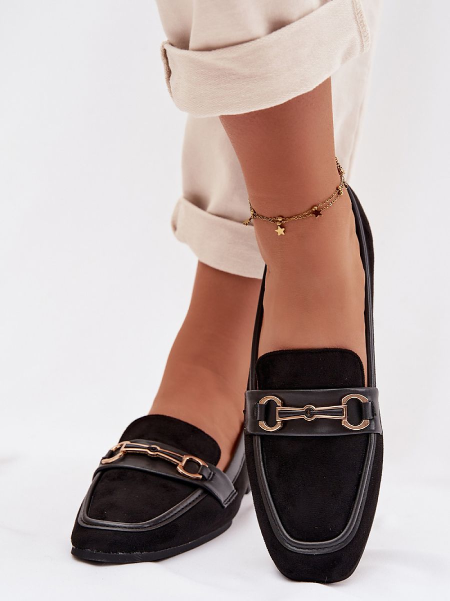 Classic women’s loafers made of eco-suede are an elegant and comfortable choice for everyday wear. The flat sole ensures comfort throughout the day, and the strap with a decorative detail placed at the front of the shoe adds a stylish, timeless character to the whole. The universal design makes loafers perfect for both casual and more elegant stylizations.