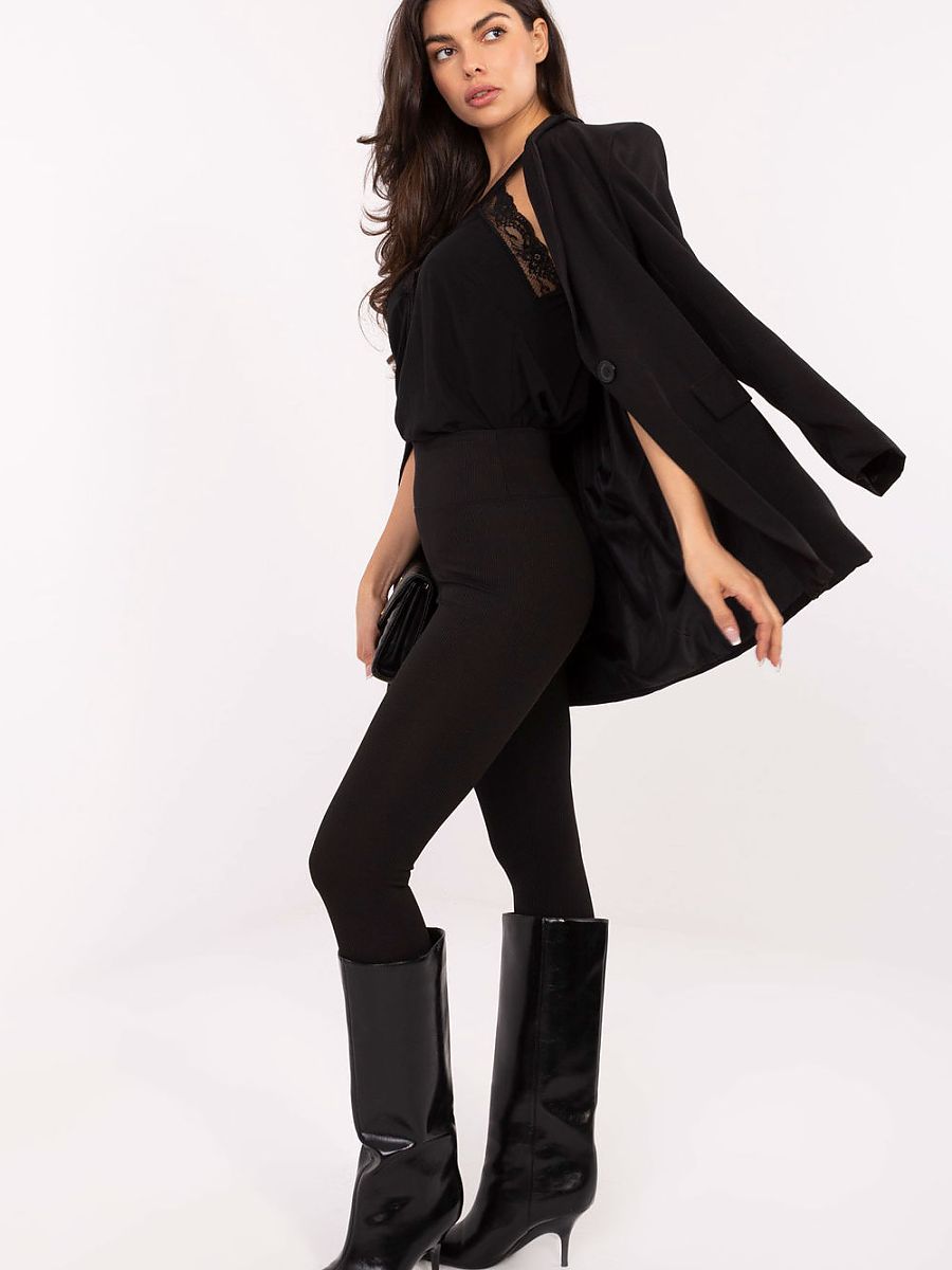 Comfortable and stylish women’s leggings perfect for both everyday and sports activities. Made of elastic material, predominantly polyester with a touch of elastane, they perfectly fit the silhouette, providing comfort and freedom of movement. The smooth, ribbed material gives them a modern, fashionable look. The leggings have a high waist, which highlights the waist and ensures a comfortable fit. Tapered legs visually lengthen the legs, and the lack of closure ensures full comfort when putting on. An ideal model for everyday wear, training, walking or home activities. Great combination of sporty and casual style.