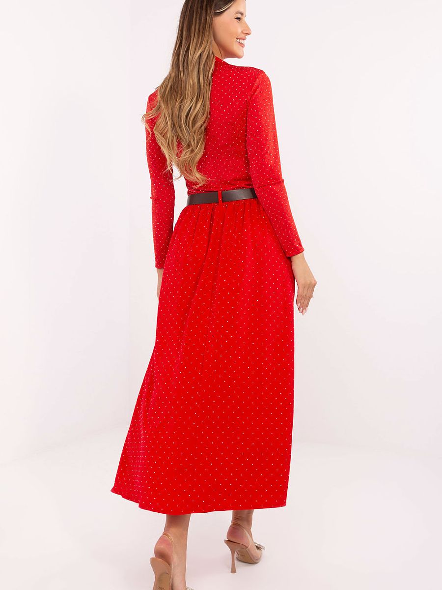 An elegant, long maxi skirt is a combination of comfort and refined style, perfect for everyday outings, work, or formal occasions. Made of high-quality polyester and viscose blend, the skirt ensures lightness and comfort while maintaining an elegant look that will suit any situation. Elastic band sewn at the waist in the back guarantees perfect fit and comfort, while the fastened belt allows for adjustment and additional emphasis on the waist. The whole skirt is decorated with subtle studs that cover the entire surface of the material, giving the skirt a unique shine and originality. In addition, the inserted pockets are a practical element that combines functionality with a fashionable look. This is an excellent proposal for elegant stylizations that will stand out with simplicity and effective detail. The skirt pairs well with both classic blouses and more daring tops, offering countless possibilities for creating elegant yet comfortable outfits.