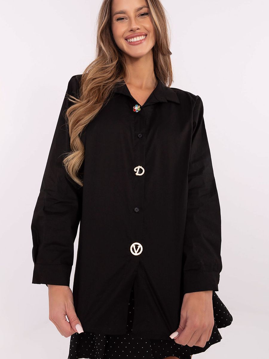 Elegant women’s shirt with a classic cut, ideal for formal occasions, work, casual or party. Made from a high-quality blend of cotton and elastane, it provides comfort in wear and a perfect fit to the figure. The shirt has a standard length and long sleeves, making it a versatile choice for any season. The classic collar and button closure emphasize its timeless character. A unique feature is the detachable brooches, which allow you to personalize your styling. Add brooches to add definition to your shirt for special occasions, or remove them for a more minimalist, classic look. The smooth material and elegant style make the shirt suitable for both formal and semi-formal outfits. It’s a great choice for women who appreciate classics and versatility in their closet.