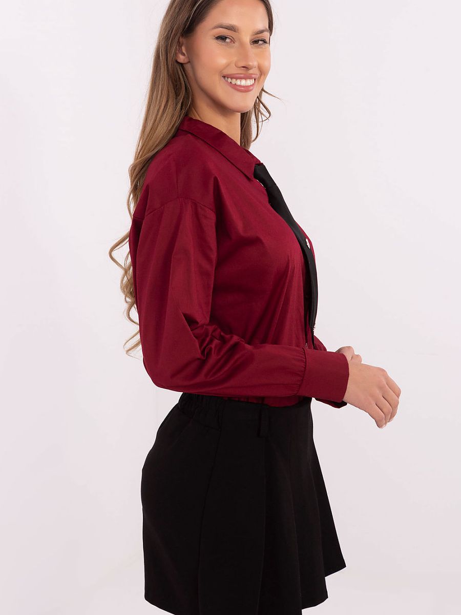Casual women’s shirt with a universal cut, perfect for everyday wear. Made from a combination of cotton and elastane, it provides comfort and a perfect fit to the figure. Smooth material makes the shirt a versatile base for a variety of styling. The model has a classic collar and button closure, which gives it a timeless character. The standard length and long sleeve make the shirt a practical choice for any season. Unique elements, such as the removable tie, allow you to, to highlight your original style, or take it off for a more casual look. Ideal for women who appreciate classic elegance with a casual touch.