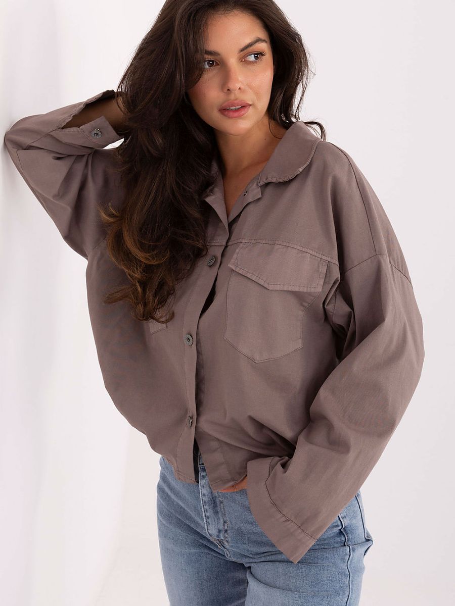 Women’s casual shirt with pockets is a comfortable and stylish proposition for everyday outfits. Made of high-quality cotton with a touch of elastane, it ensures comfort, breathability, and perfect fit to the silhouette. The smooth fabric and classic button fastening give it a universal character that fits perfectly into a casual style. The model with a shorter length, long sleeves, and a collar has practical front pockets with flaps, adding functionality to the whole. At the back, a rubber band is sewn at the bottom, so the shirt fits better on the silhouette and subtly emphasizes the waist. It goes well with jeans, skirts, or shorts, creating a comfortable and trendy everyday outfit.