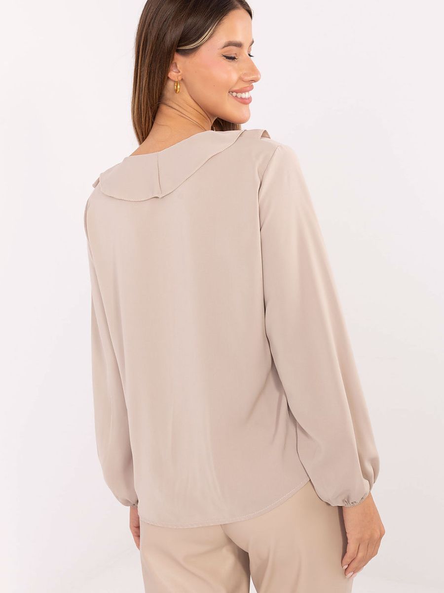 An elegant women’s blouse with ruffles on the front and a subtle jabot is the perfect choice for work, formal meetings, and everyday outings. Made of a high-quality blend of polyester, viscose, and elastane, it combines wearing comfort with material durability. The smooth pattern and standard length ensure a classic look, while the puffed sleeves add a feminine charm and lightness to the overall appearance. The model without fastening allows for easy putting on, and the striking details of ruffles and jabot give the blouse an elegant and stylish character.