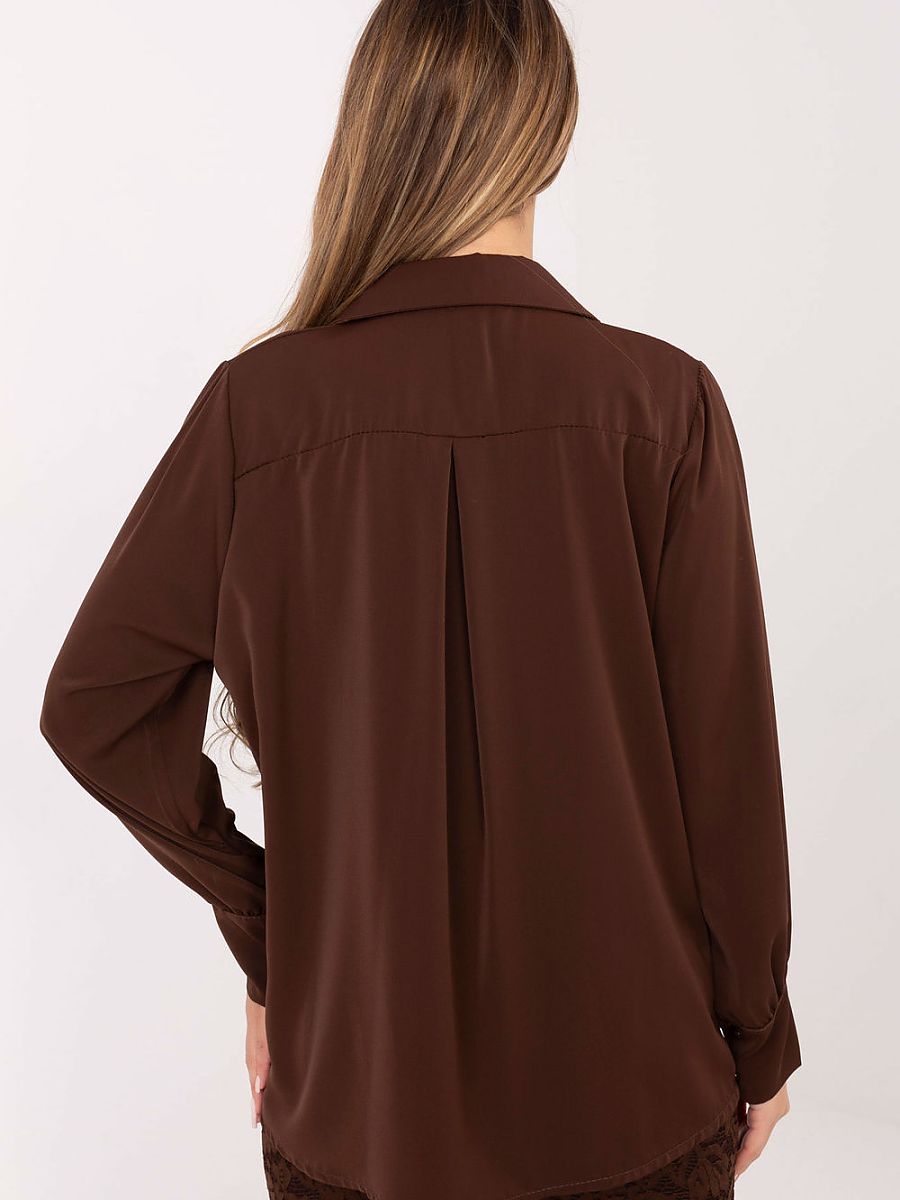 Elegant classic women’s shirt, perfect for everyday wear, work and formal occasions. Made of high-quality polyester, which ensures durability, lightness, and comfort of wearing, while also providing an elegant, meticulous look. The standard length model has long sleeves with cuffs and puffy sleeves that add subtle femininity and a trendy character to the overall look. The collar gives the shirt a classic touch, and the front is adorned with an elegant frill detail highlighting the chic style. The shirt has decorative buttons for closure, which not only make it easier to fit but also serve a decorative function, enriching the minimalist, smooth pattern of the material. This is a proposal for women who appreciate a combination of classic elegance, subtle details, and comfort in everyday and formal styling.
