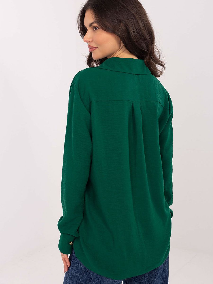 A classic women’s shirt with an extended back is the perfect choice for women who appreciate comfort and timeless style. The model is made of high-quality cotton, which provides comfort and breathability throughout the day. The shirt has a smooth pattern, making it perfect for both casual and more formal stylings, for work or everyday wear. The button closure emphasizes its classic character, while the extended back adds a modern touch and allows for versatile styling, both with pants and leggings. The standard length and universal cut make the shirt perfectly fit the silhouette and provide freedom of movement. A must-have in every woman’s wardrobe.