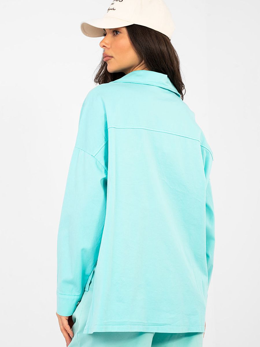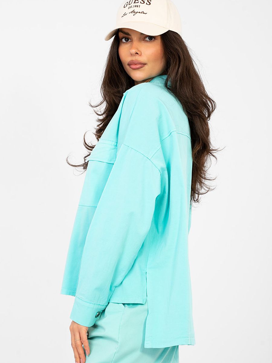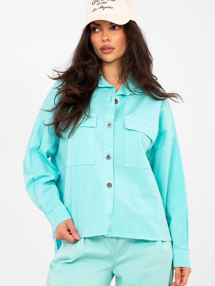 Universal women’s casual shirt, perfect for everyday stylizations. Made of pleasant to the touch cotton with a hint of elastane, it ensures comfort and freedom of movement throughout the day. A model of standard length, with a slightly elongated back, which gives a modern character and fits well on the silhouette. The smooth pattern makes the shirt easy to style with both trousers and leggings. The shirt has long sleeves, a classic collar, and a button closure. On the front there are patch pockets that emphasize the casual style and add a practical accent. This is an excellent choice for women who value comfort, functionality, and timeless design.