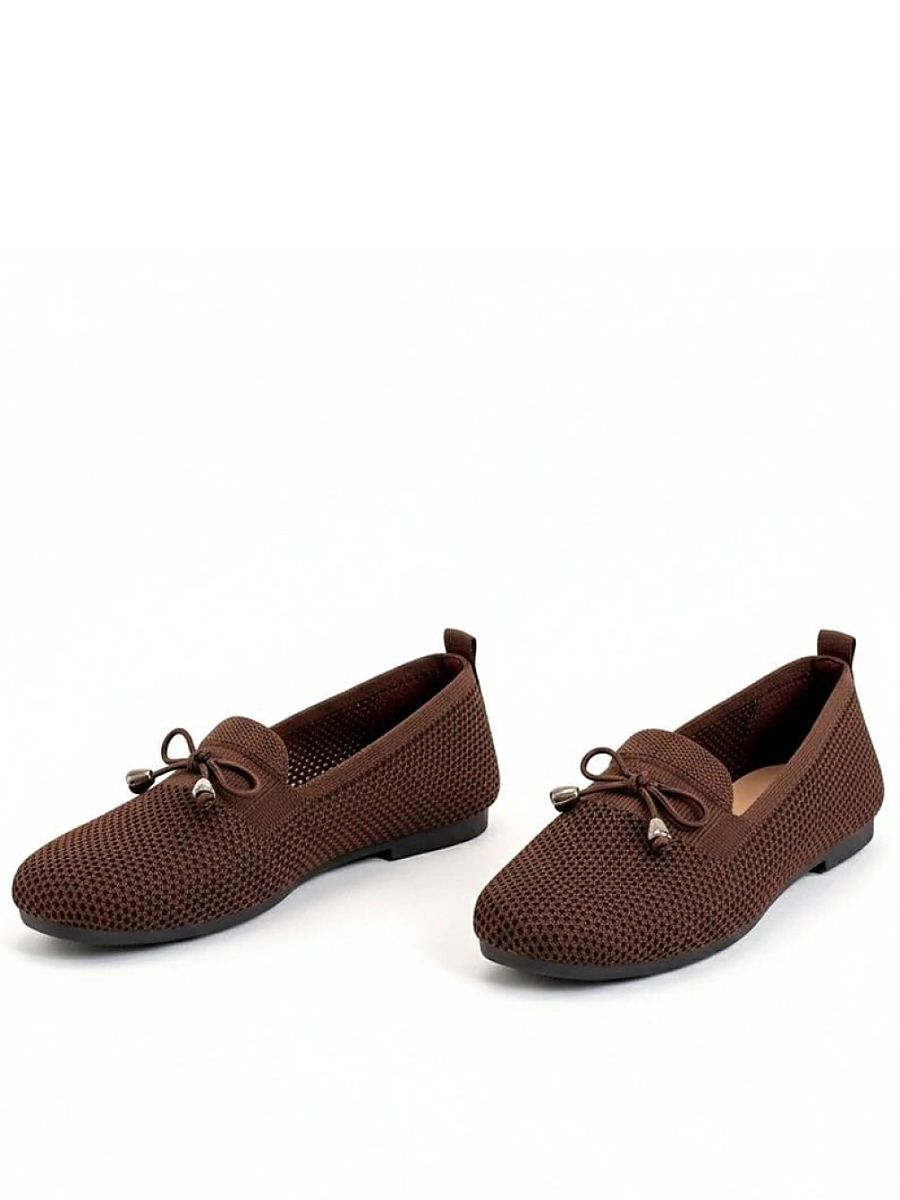 Stylish moccasins with a fancy decorative bow on the front are a perfect combination of classic and feminine charm. The model is made of high-quality fabric that is lightweight, breathable, and pleasant to the touch, making it ideal for warmer days. The shoes have a trendy square toe that gives them a modern character and provides comfort for the toes. This low-cut style works well with both pants and dresses or skirts. The 2 cm heel gently lifts the silhouette, guaranteeing stability and comfort during everyday wear. The slip-on construction allows for quick and convenient putting on without the need for fastening or lacing. The fabric insole increases wearing comfort and ensures proper air circulation. It is an ideal choice for women who appreciate comfort, subtle elegance, and timeless style.