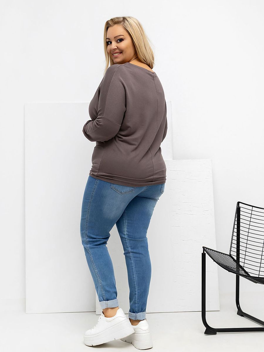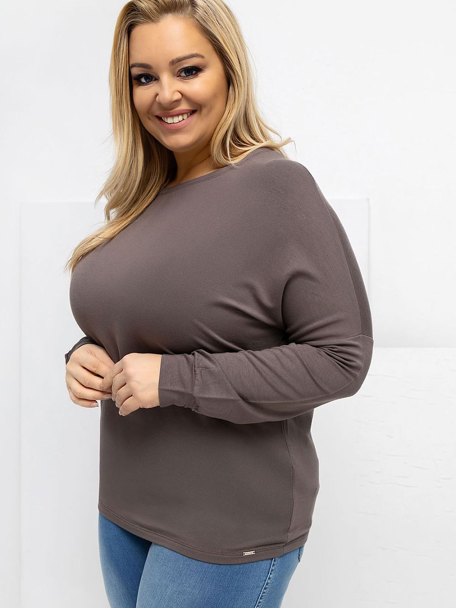 Plus size blouse with a classic, round neckline, created with comfort and everyday use in mind. Casual style model, perfect for everyday occasions such as work, walks, or casual meetings. The smooth pattern makes the blouse versatile and easy to style. Made of high-quality micro modal with elastane, the material is exceptionally soft, light, and flexible, perfectly fitting the silhouette without restricting movement. Standard length and long sleeves ensure comfort throughout the day. The lack of fastening emphasizes the simple, comfortable form. It is an excellent base for many daily stylizations, both with jeans and a skirt.
