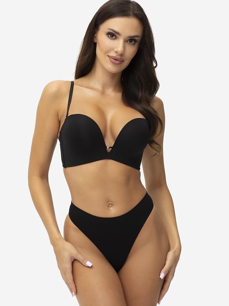 Push-up bra is a model created to emphasize and visually enlarge the bust. Padded cups with a 2 x push-up effect lift and shape the breasts, giving them a fuller, tantalizing shape. Thermally molded cups with a fixed filling provide a lasting lifting effect and perfect fit to the silhouette. The model is equipped with side underwires, which additionally stabilize the construction and support the bust. The bra fastened at the back ensures comfortable use, and adjustable straps allow for a perfect length adjustment. Thanks to the possibility of detaching them, the model will also work with stylizations requiring different solutions. The smooth surface makes the bra not stand out under clothing, making it perfect for fitted outfits. It is an ideal choice for women with small and medium breasts who want to achieve the effect of a clearly emphasized neckline.