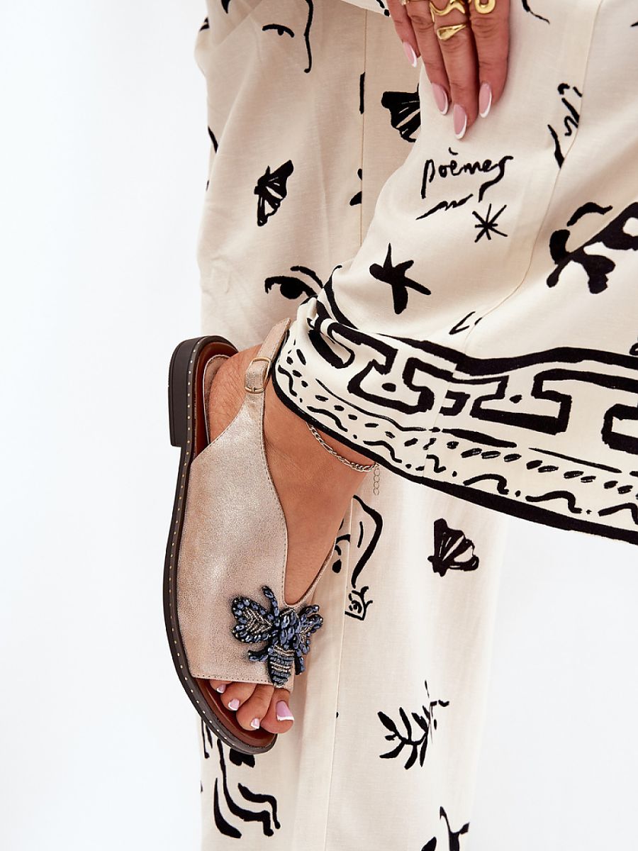 Shiny women’s sandals from the Jezzi brand are a perfect choice for summer stylizations. Made of high quality eco leather, they provide durability and comfort. The flat heel guarantees comfort throughout the day, and the subtle decoration on the front adds an elegant charm to them. Fastened with an adjustable buckle strap, they allow for a perfect fit to the foot. These sandals will be a great addition to both casual and more formal outfits, perfect for various occasions.