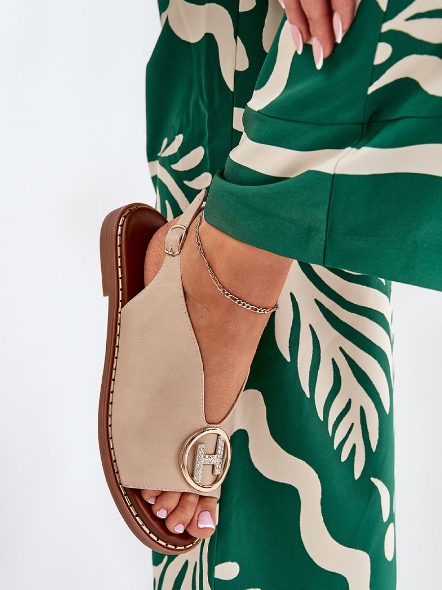 Eco-leather sandals are an elegant option for summer days. Mounted on a flat heel, they provide comfort and stability. At the front, there is an embellishment that adds a subtle charm. Fastened with an adjustable strap with a buckle, they allow for a perfect fit to the foot. These sandals will be an excellent choice for elegant styles, combining trendy appearance with comfort.